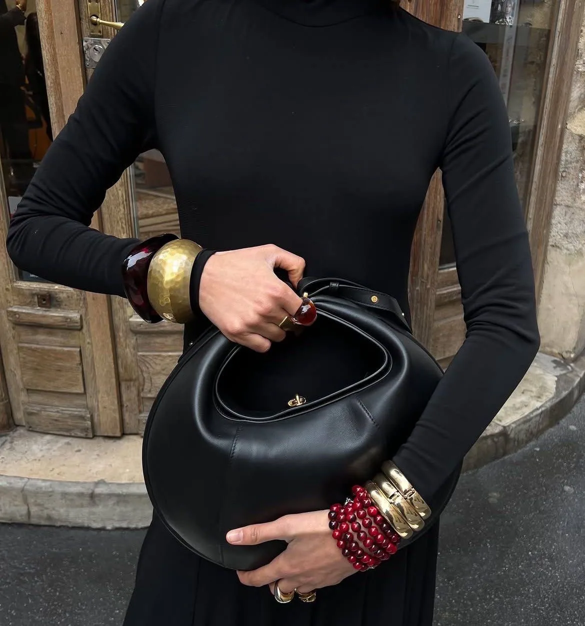 Любой минималистичный образ можно сделать интересным благодаря аксессуарам. Просто добавьте сумку нестандартной формы, и лук будет смотреться иначе!