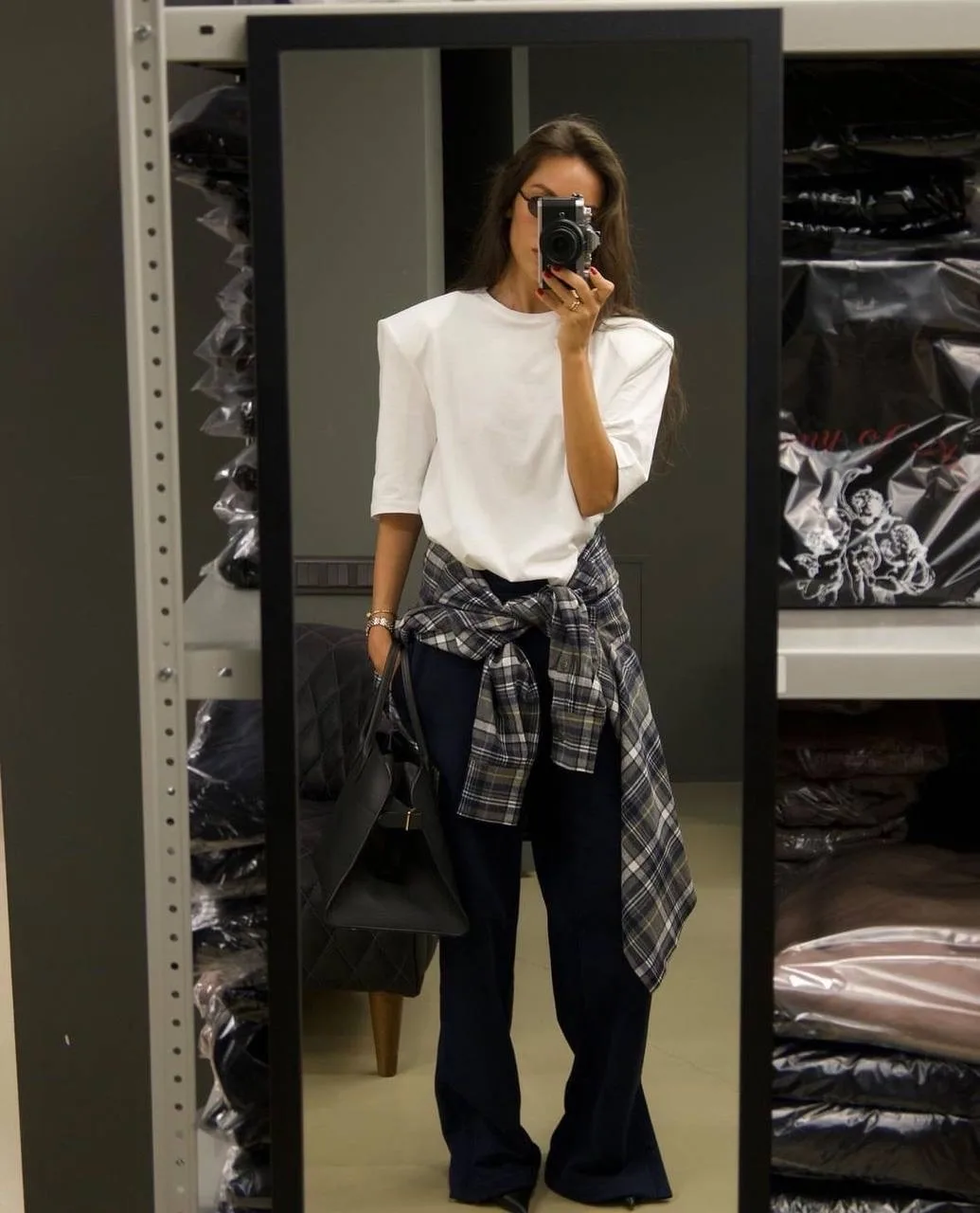 Даже с базовой белой футболкой луки могут выглядеть стильно и совсем не скучно. Ловите несколько идей для вдохновения ⬆️