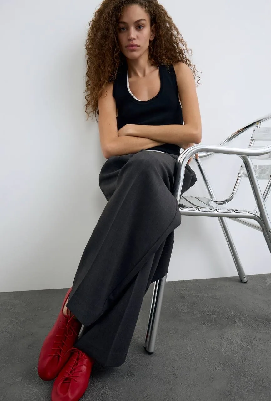 Вы только посмотрите какая красота была найдена в Lime. Очень стильные красные балетки на шнуровке! Кажется, я определилась с обувью на весну.