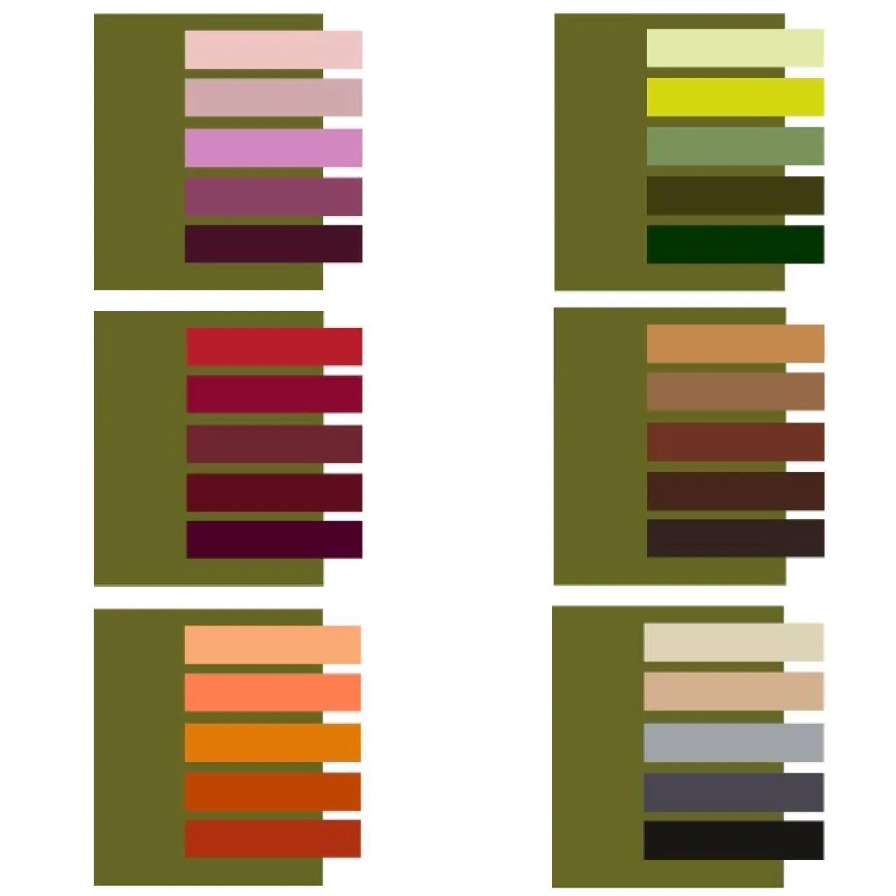 Шпаргалка по сочетанию оливкового цвета с другими оттенками