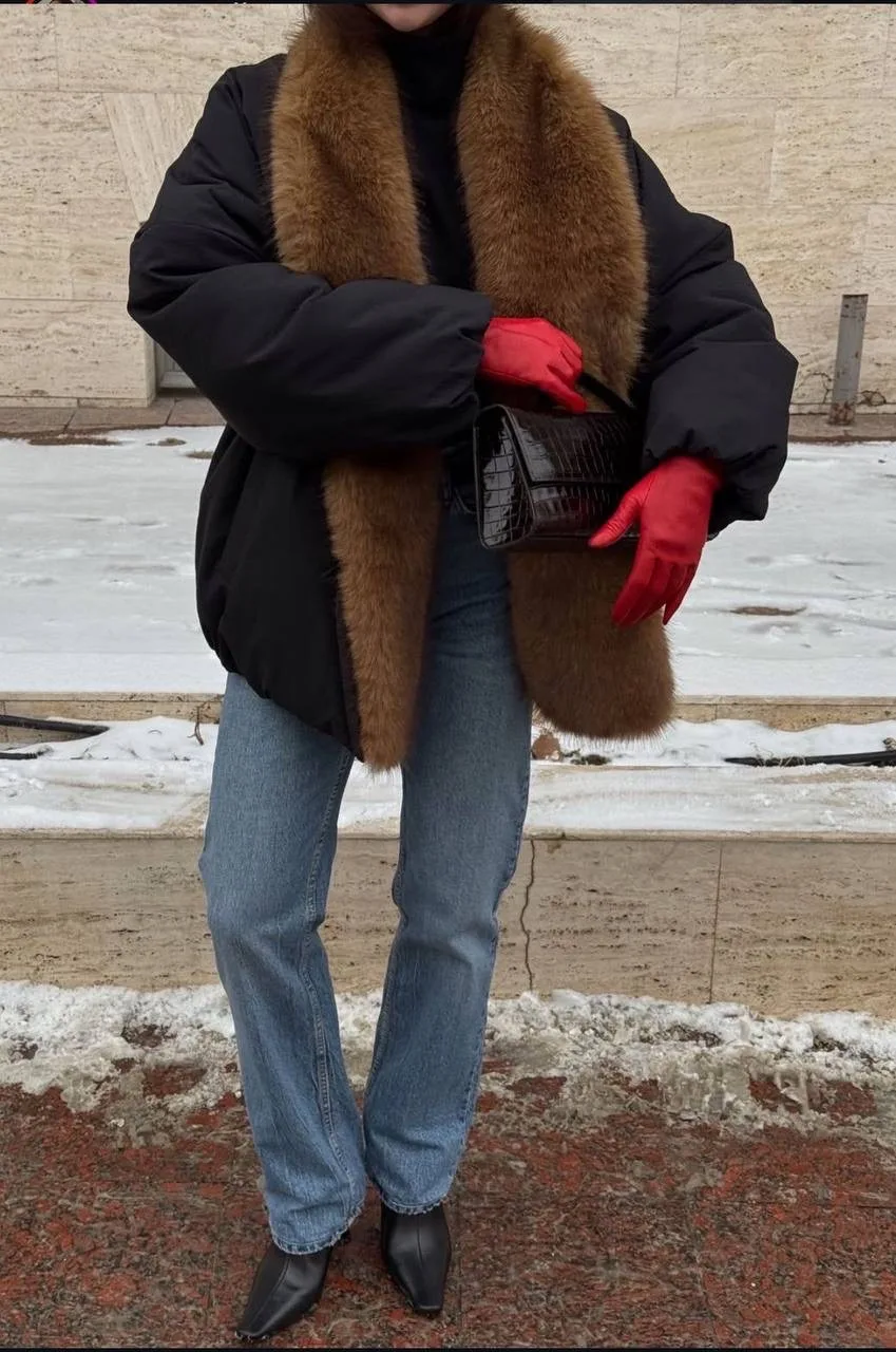 А вот когда одновременно и блестит, и выглядывает что-то пушистое, и торчит кусок одежды с крупным принтом — часто получается каша.