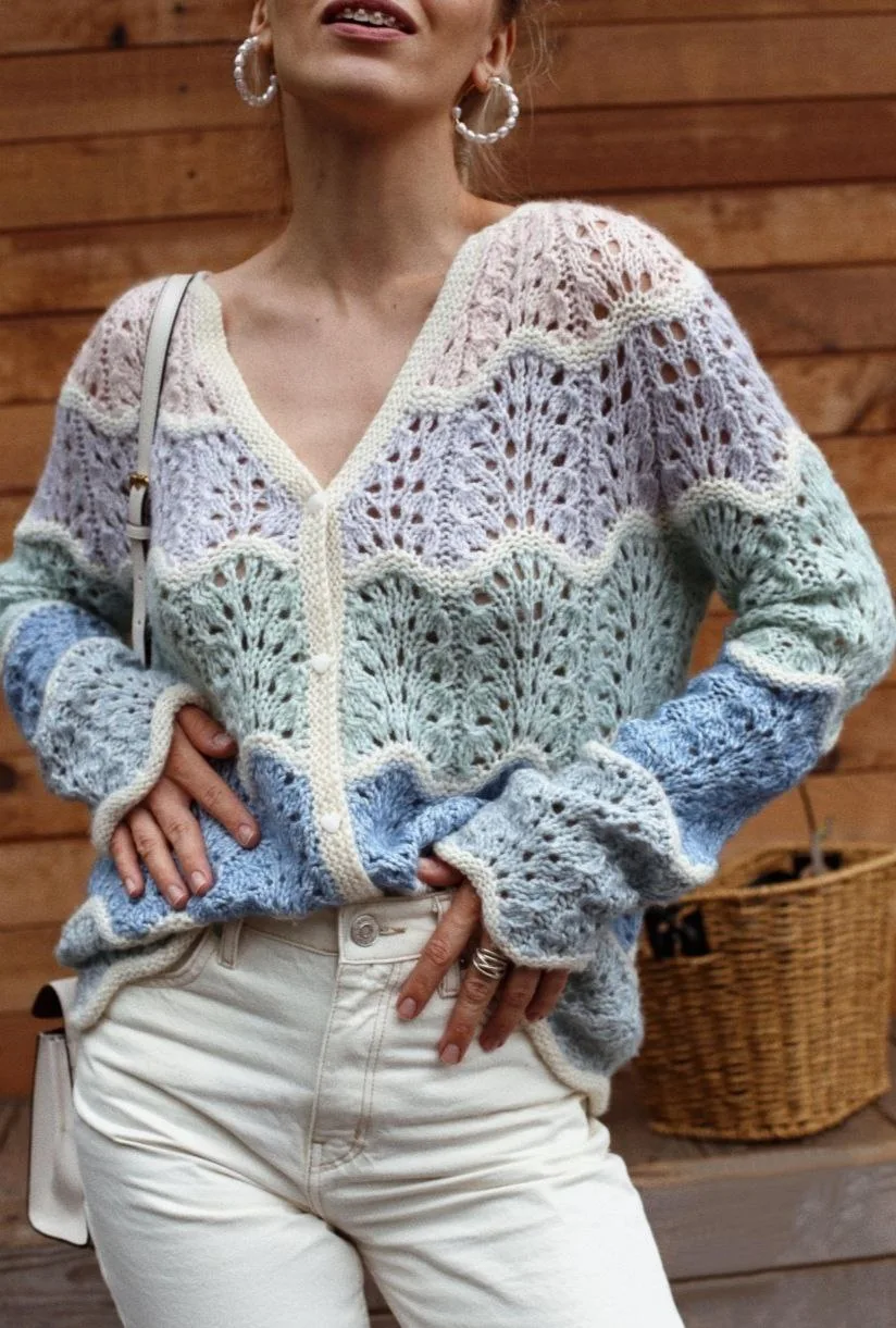 Красивая воздушная кофточка спицами.