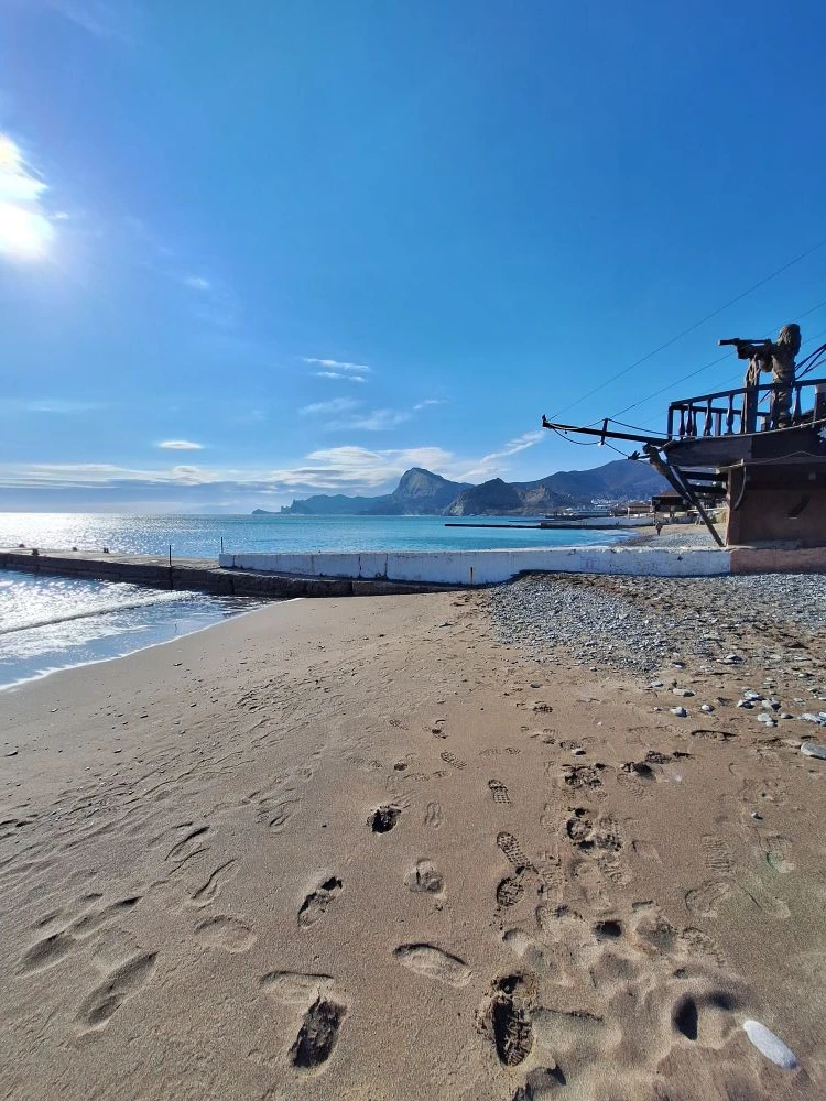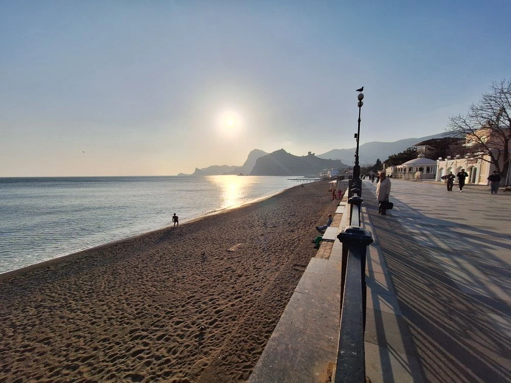 Сегодня великолепный день — температура поднялась до 16 градусов, небо ясное, голубое, а лёгкий бриз приятно обдувает лицо. Море и солнце создают отличное настроение всем, кто наслаждается прогулками вдоль побережья. Как же приятно прогуляться, вслушиваясь в мелодичный шум волн и вдыхая свежий морской воздух. Привет из Крыма!