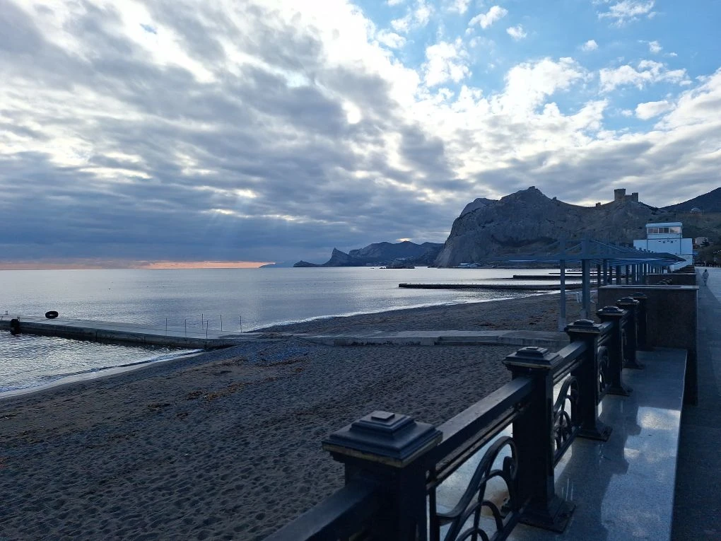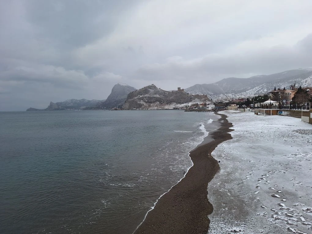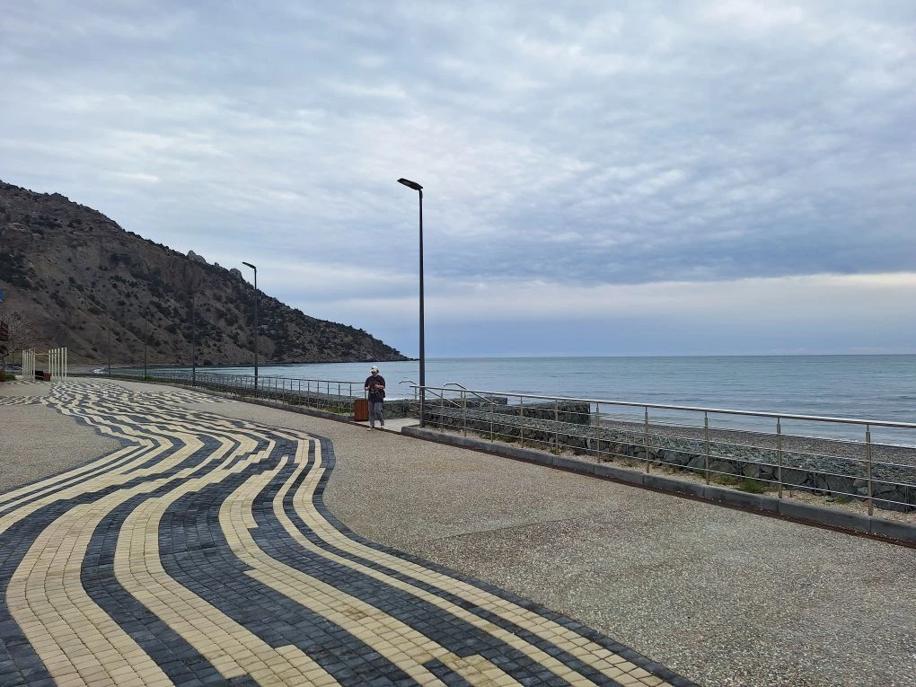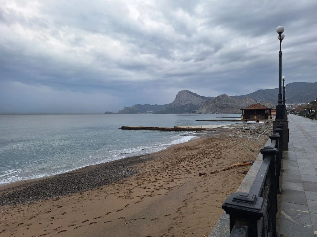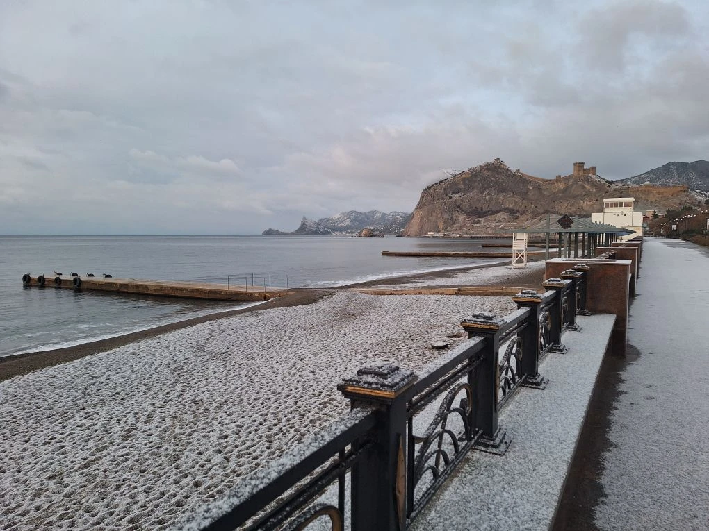 До Нового года остаётся всего неделя. Судак погружён в спокойную зимнюю тишину. Сквозь плотную облачность иногда пробиваются лучи солнца, освещая безлюдные пляжи. Температура держится на отметке +7°C, а ночью опускается до 0... +2°C. На набережных царит полное затишье: ни ветра, ни дождя, ни шторма. Коты, устроившиеся на скамейках, наблюдают за прохожими, ожидая угощения. Здесь можно прогуляться и насладиться свежим морским воздухом. Именно так выглядит Крым в настоящее время.