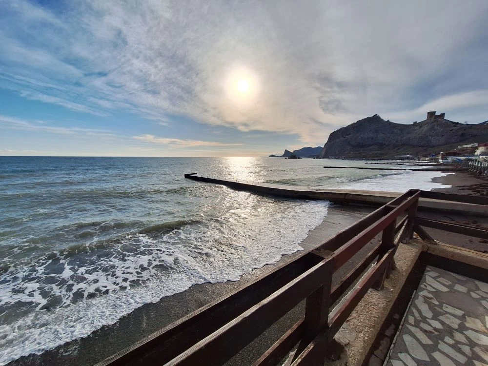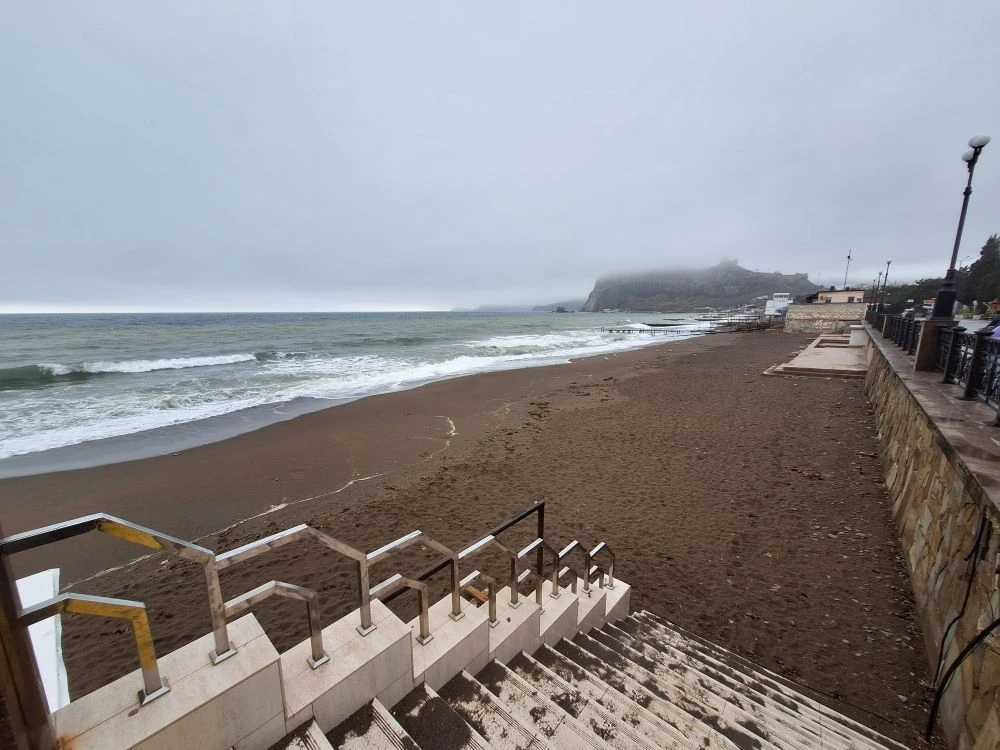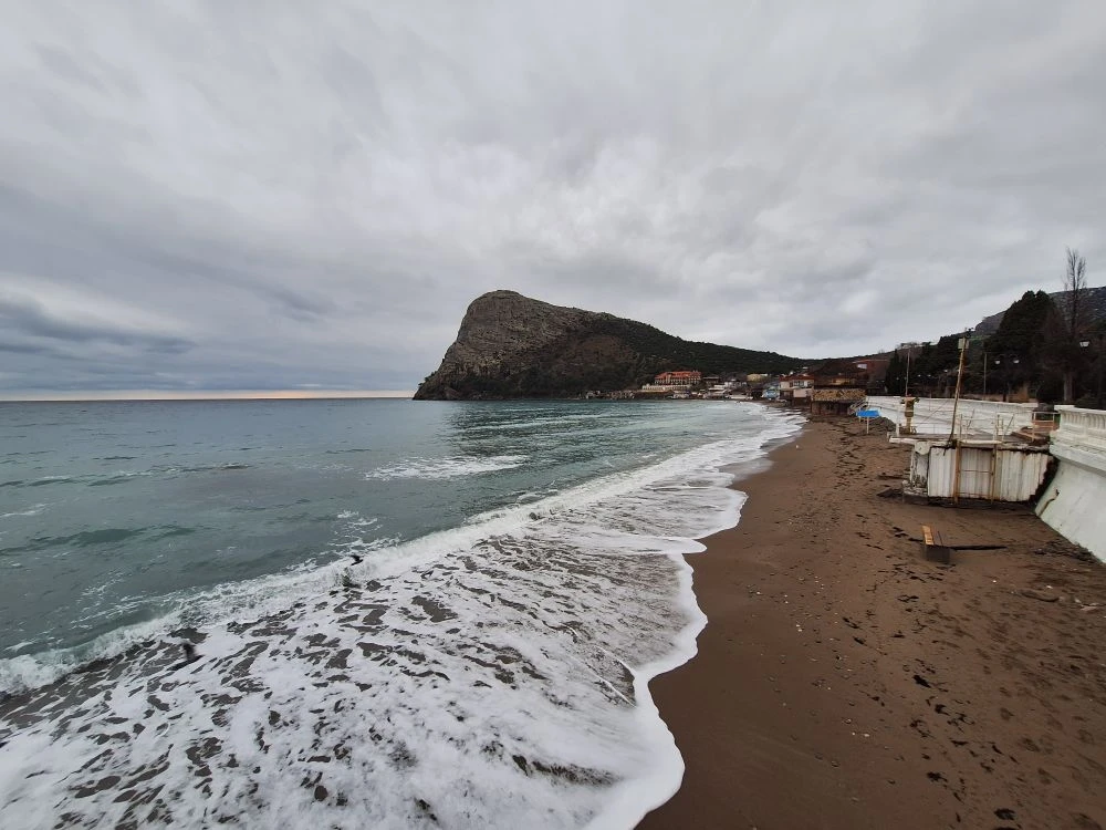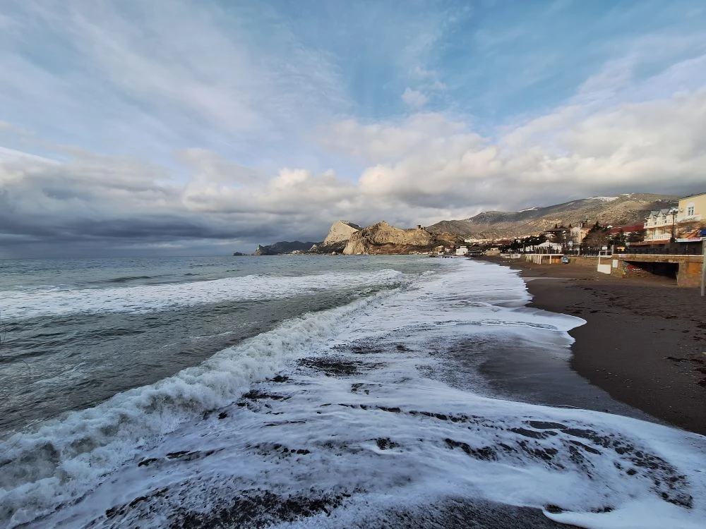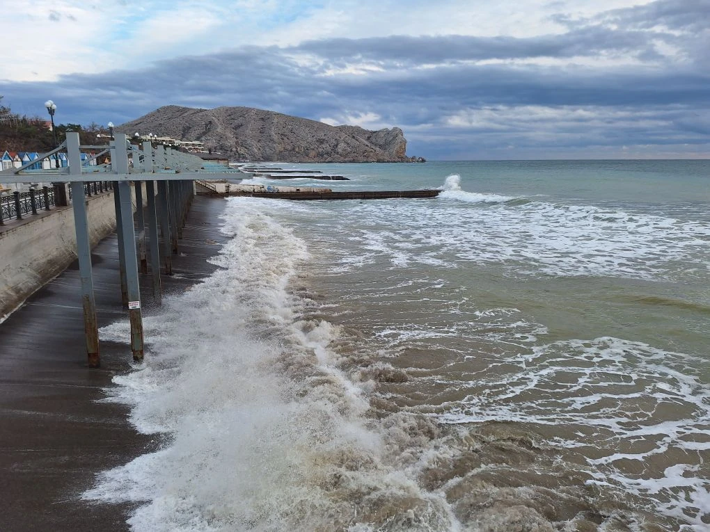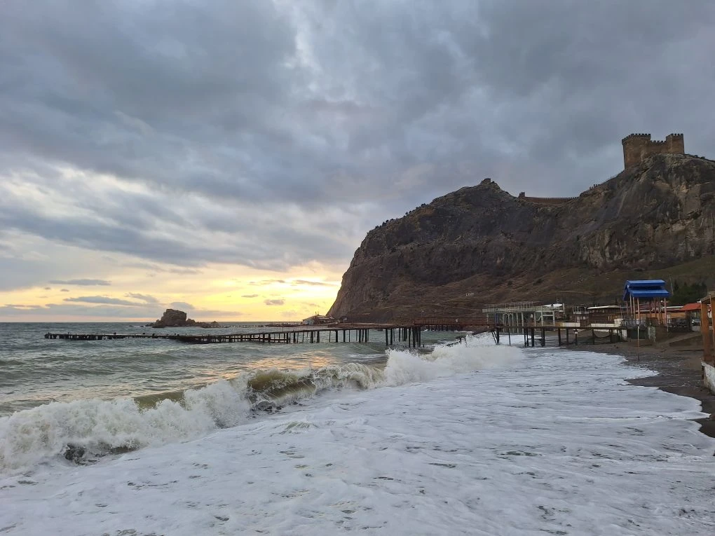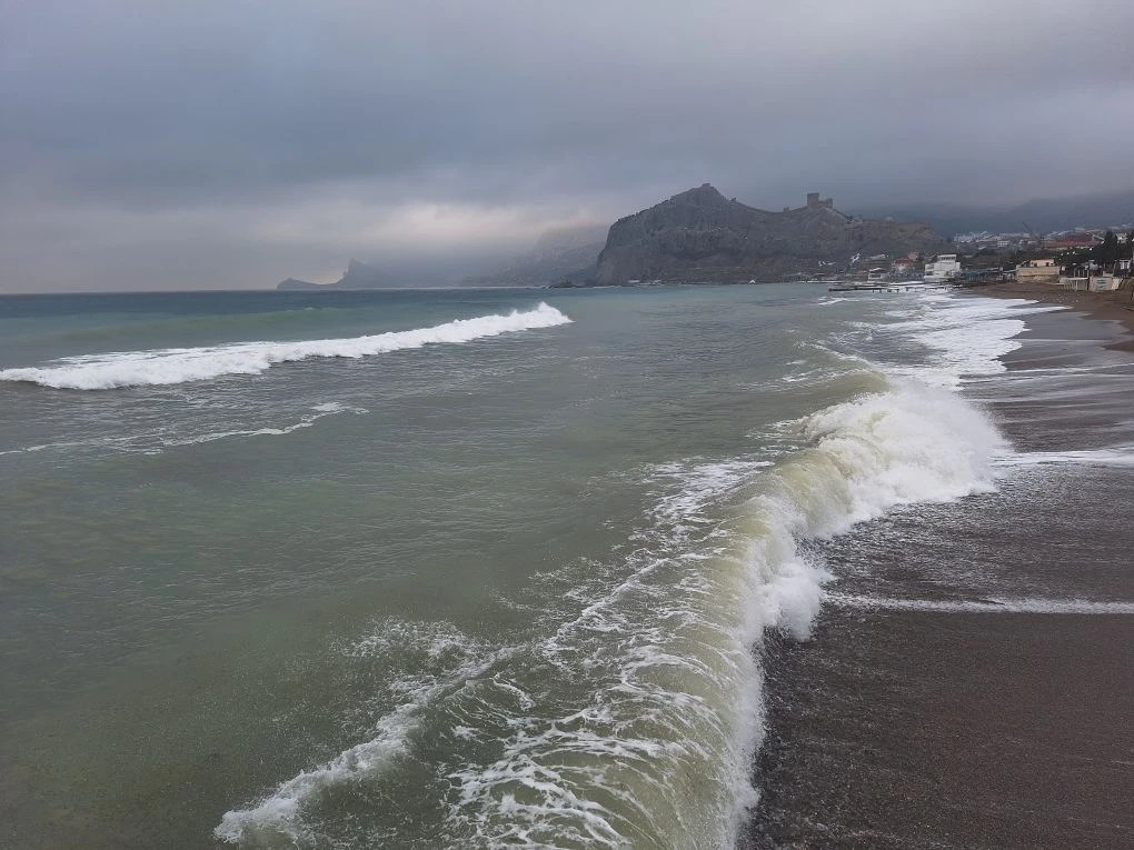 На побережье Крыма разыгрался шторм. Волны яростно накатывают на берег, а порывистый ветер делает воздух ощутимо прохладным, хотя температура всего +5°С. Чтобы не замёрзнуть, не забудьте о тёплой одежде, включая шапку и куртку. Несмотря на непогоду, выходите на прогулку и наслаждайтесь свежим морским бризом. Но не забывайте о безопасности: избегайте мест, где вас может накрыть волной, и будьте предельно осторожны. С наилучшими пожеланиями из Крыма! Вот как сейчас выглядит Морское.