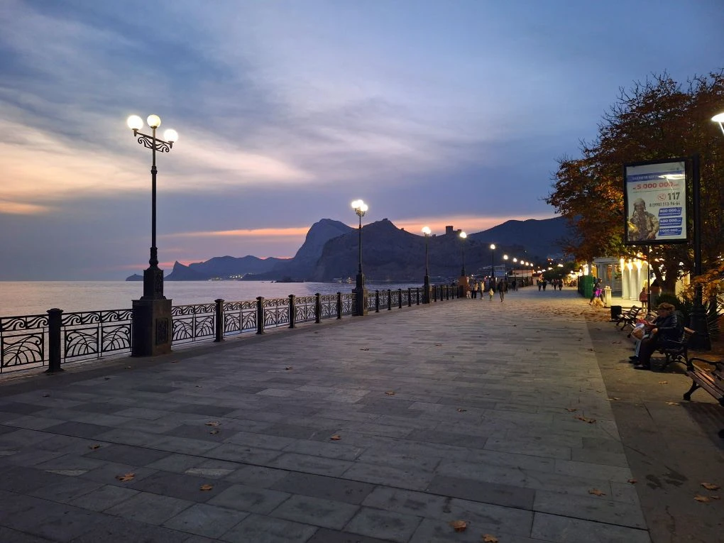 В конце ноября в Крыму — настоящая сказка: даже после захода солнца можно комфортно прогуляться, нет ни ветра, ни холода. Природа словно замерла в безмятежности, создавая ощущение спокойствия и уюта...