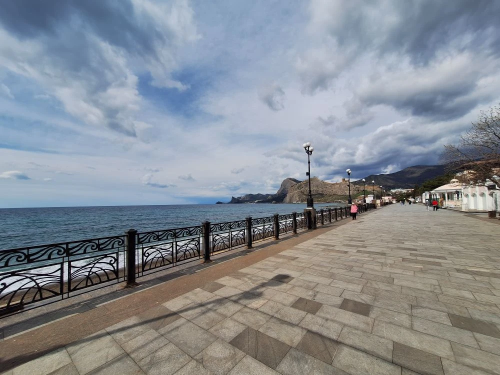 В Судаке сегодня царит переменчивая погода: солнечные лучи мелькают сквозь облака, а затем вновь скрываются за густыми тучами. Температура воздуха составляет +12°C. Крымское побережье окутано атмосферой уюта.
