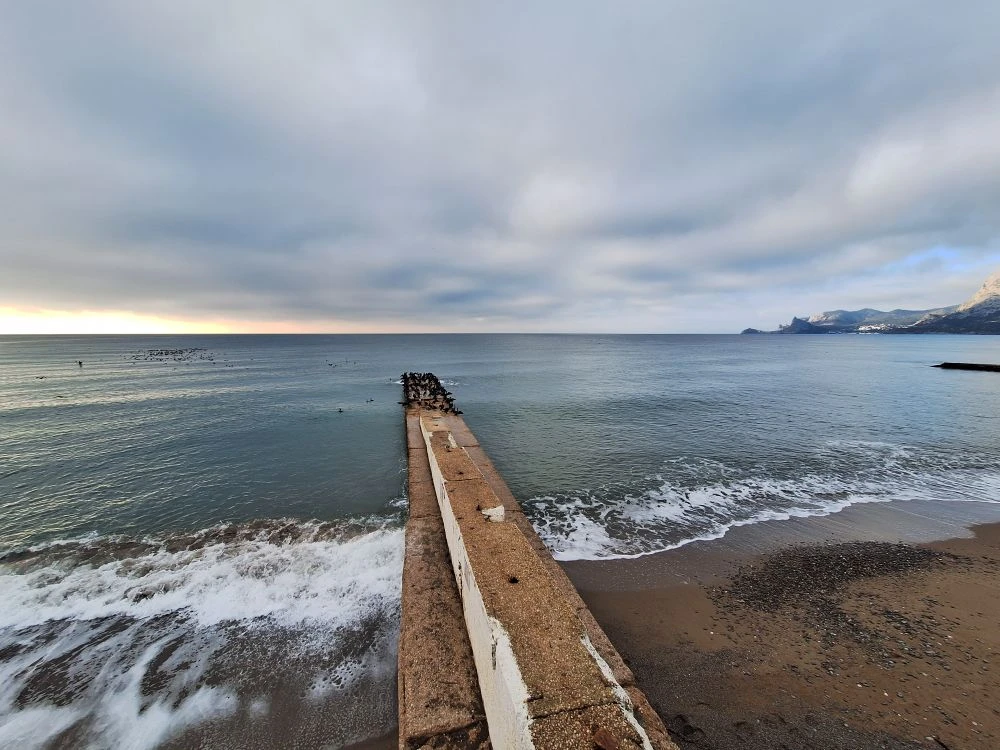 Восьмой день зимы окутал спокойствием — переменное облачное небо с редкими проблесками солнца создаёт удивительно романтичную атмосферу. В воздухе свежесть, а море — спокойное и умиротворяющее. Идеальный день для прогулки по побережью.