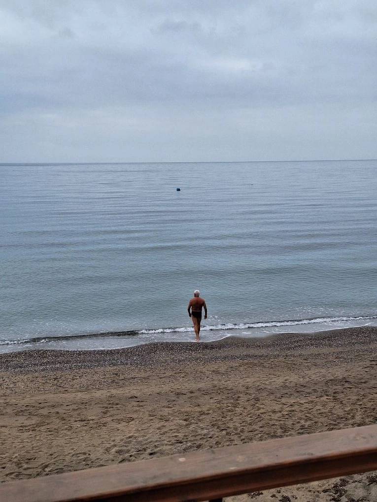 Сегодня, девятый день зимы в Крыму, встречает нас пасмурной и прохладной погодой, с температурой воздуха всего +9°C. Море, несмотря на холод, продолжает радовать нескольких смельчаков, которые отважились окунуться в воду, температура которой составляет +14°C. Большинство же отдыхающих предпочитают наслаждаться свежим морским бризом, не погружаясь в волны. Тишина, серость, пустые пляжи, легкая прохлада и монотонный шум прибоя создают неповторимую атмосферу на набережной. Привет из Крыма! 😊