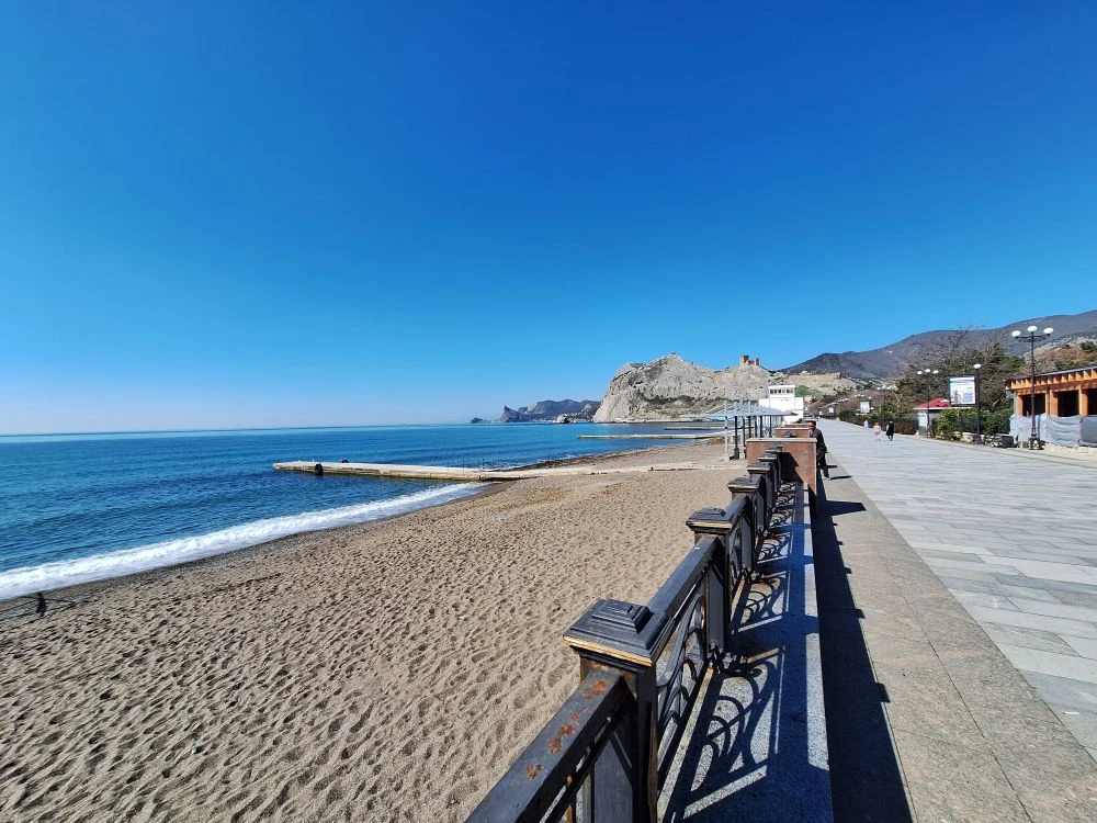Солнце, голубое небо — это весна, радость в каждом мгновении. Шум моря и запахи — всё это создаёт атмосферу счастья, которая царит на набережной у мыса Меганом.