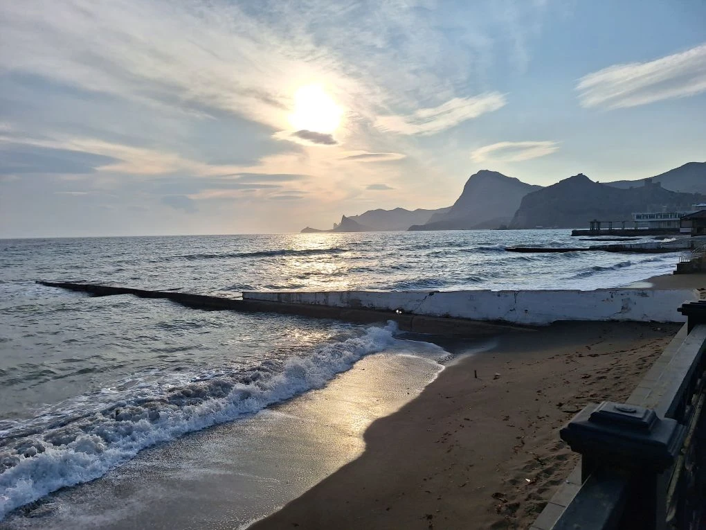 Вечером на побережье Крыма я наслаждаюсь моментом. Небо ясное, солнце заливает горизонт мягкими красками. Температура +12°C — это уже тепло для марта. Хочется прогуляться по пляжу, слушая шум волн и вдыхая свежий морской воздух.
