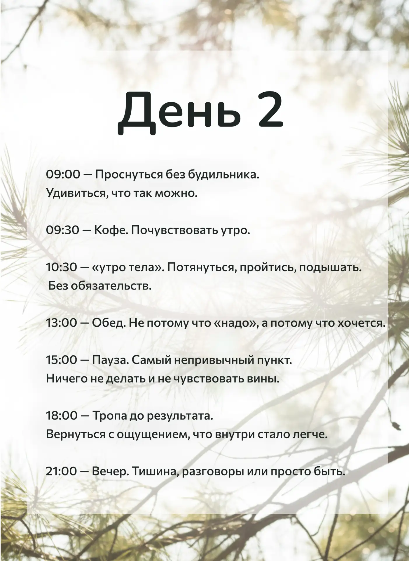 Попробуйте 24 часа без ленты и чатов: прогулка по бору, чай на природе, ранний сон. ☕