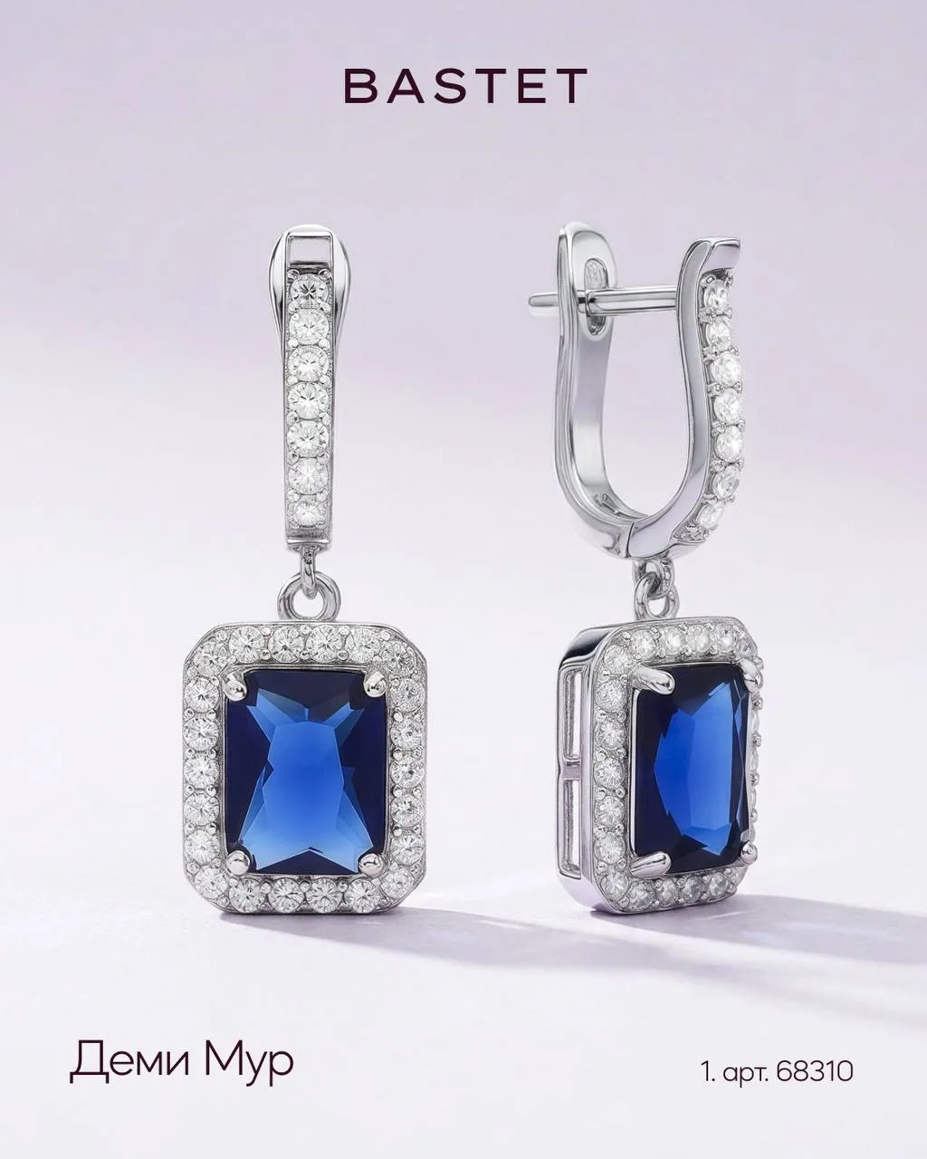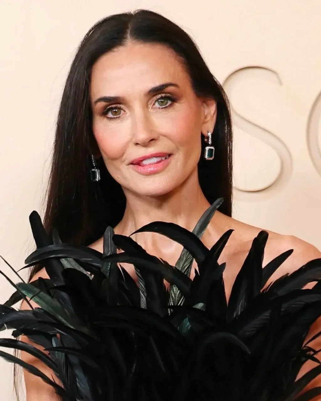 ❤️Деми Мур сделала акцент на выразительных серьгах с синими фианитами;