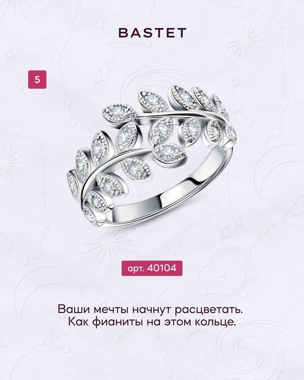 Добавить в образ это весеннее настроение помогут серебряные кольца-веточки с фианитами от Bastet: