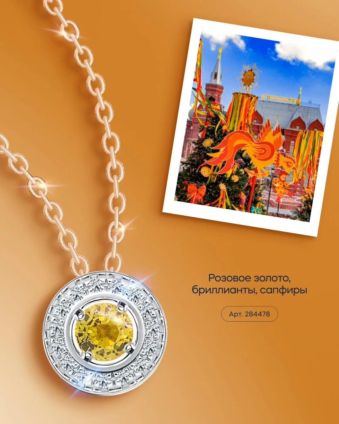 ❤️ Биколорная подвеска с жёлтым сапфиром и 15 бриллиантами.