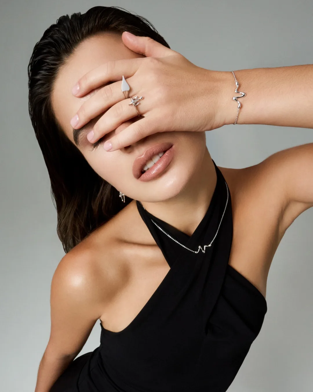 ❤️колье, браслет и кольцо с эффектным дизайном «расплавленный металл»;