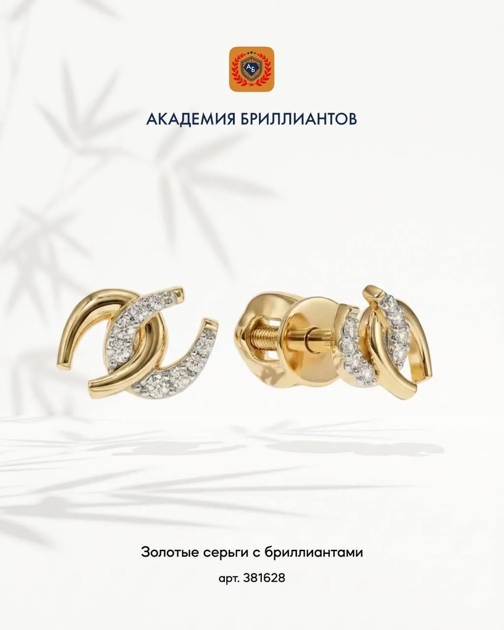 💎 пусеты-подковы из жёлтого золота с 16 бриллиантами от Академии Бриллиантов.