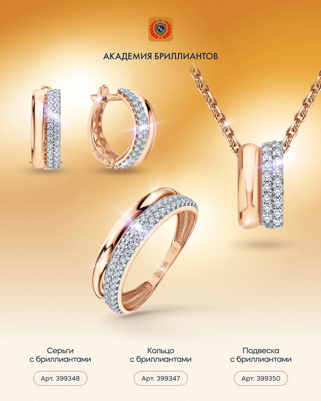 Украшения Академии Бриллиантов из розового и жёлтого золота созданы