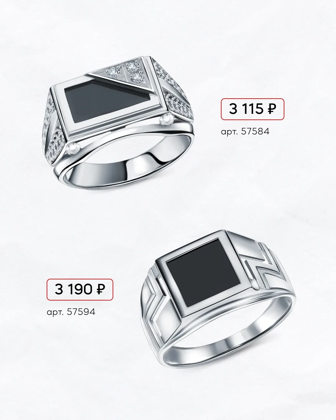 🖤 Артём — геометричная печатка с чёрным фианитом;