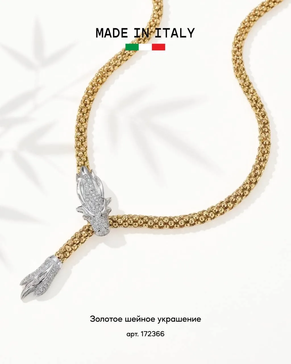 💎 биколорное серебряное колье-дракон с фианитами от Брендов Италии.