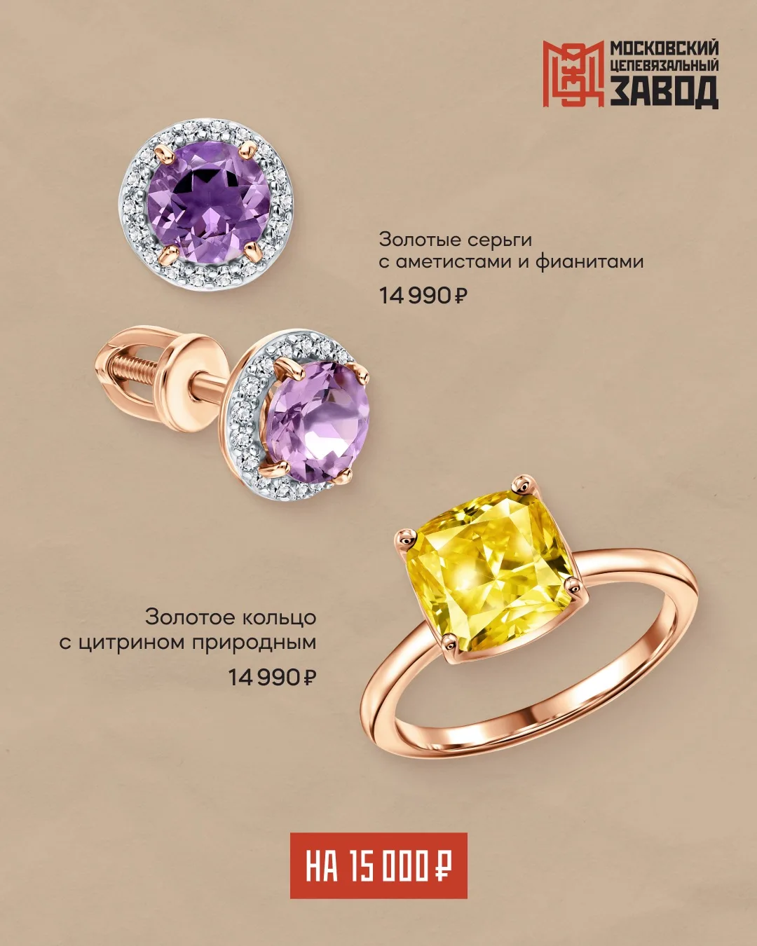 ❤️ на 15 000 ₽ — кольцо с цитрином и пусеты с аметистами.