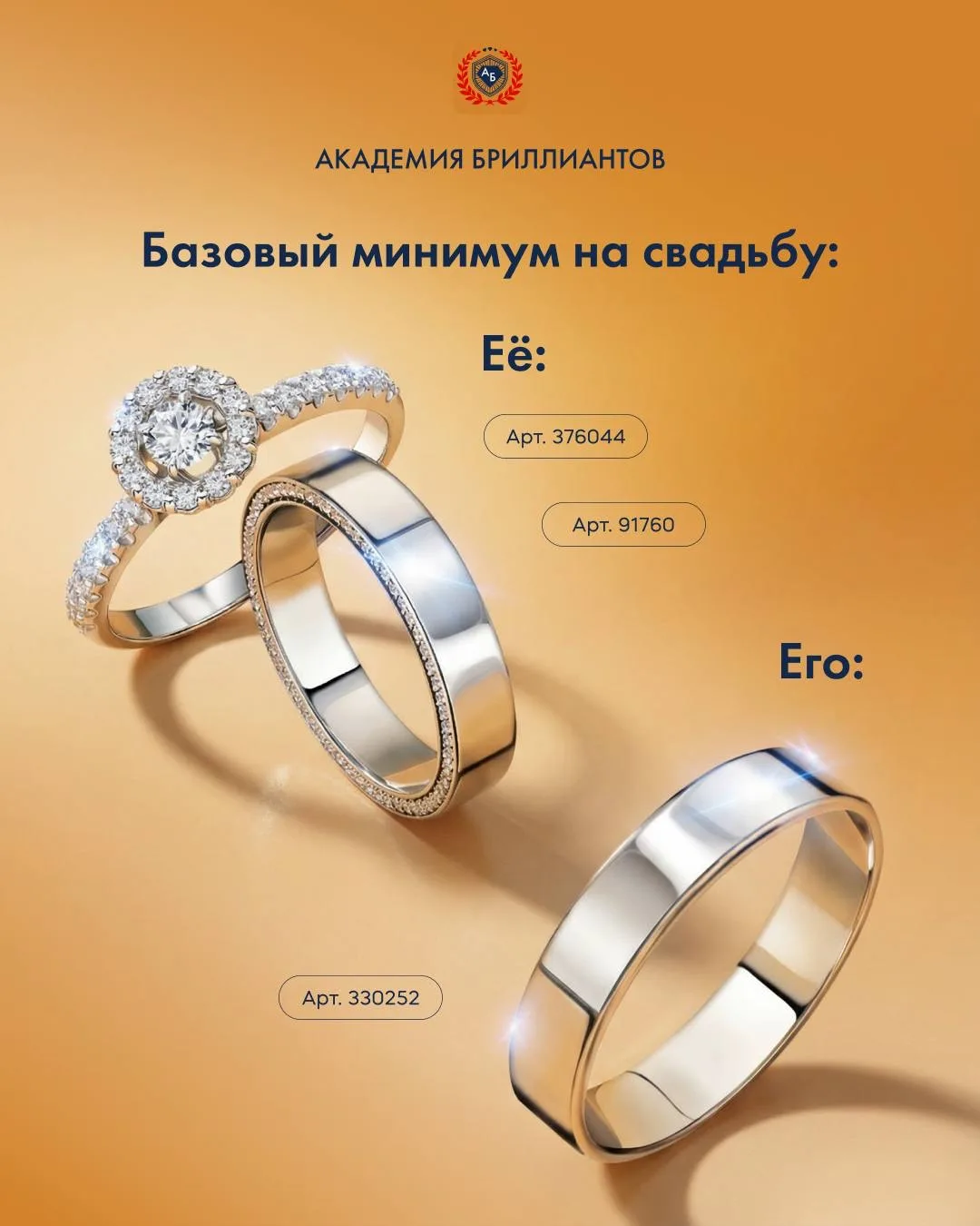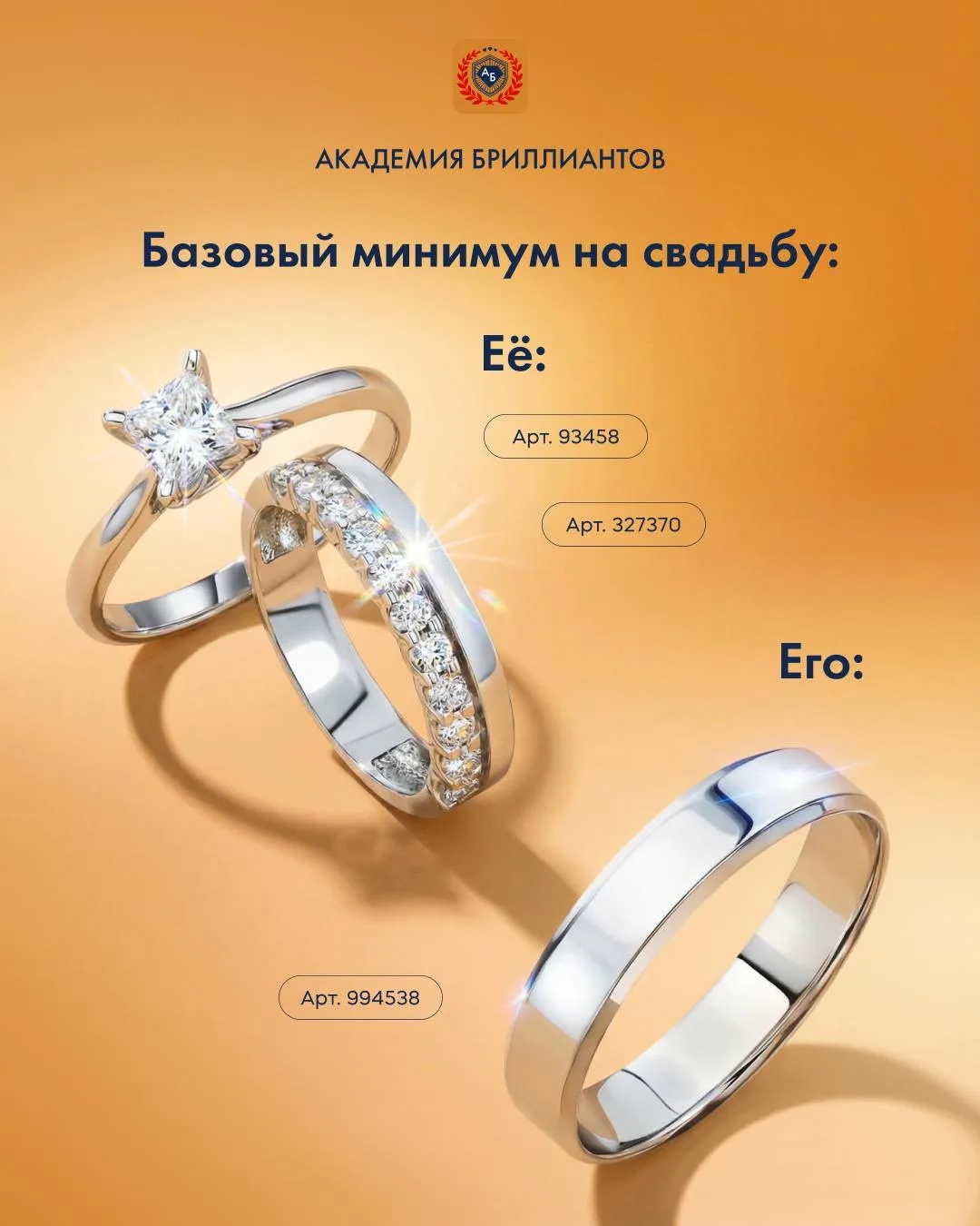 Выбирайте своё идеальное обручальное кольцо от Академии Бриллиантов по выгодной цене от 5 555 руб✨