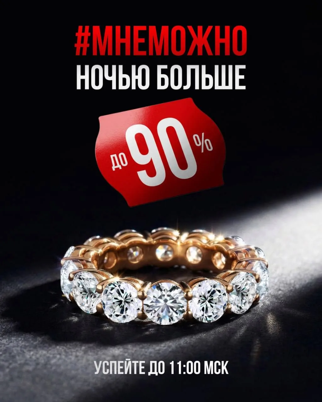 Сейчас как раз на обручальные кольца действует дополнительная скидка 50% по промокоду «МОЖНО».*