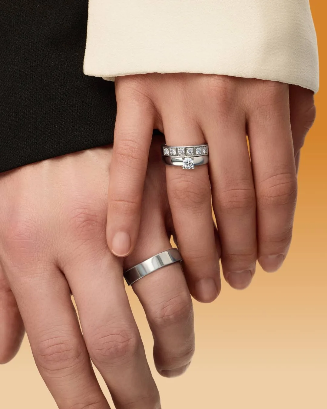 Мы собрали сеты помолвочных и обручальных колец для неё и обручальные для него, чтобы вы могли сразу представить, как они будут смотреться вместе.