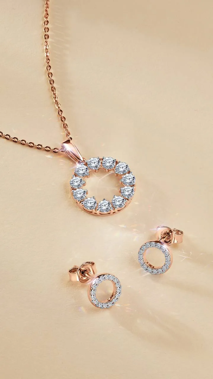 Например, выберите комплект из розового золота с бриллиантовыми дорожками: