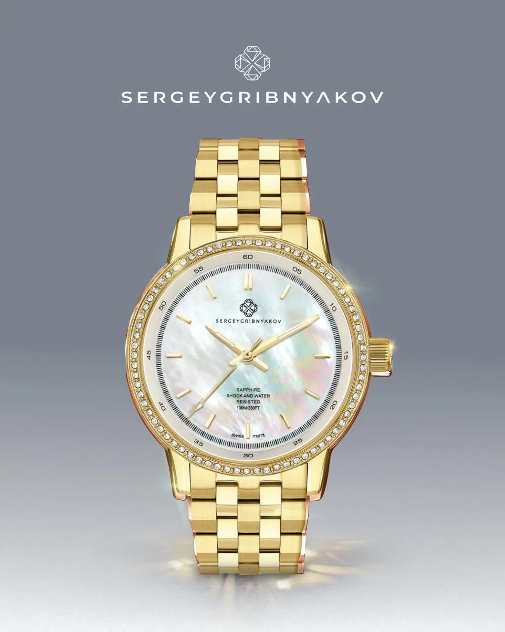 Корпус из стали 316L украшен инкрустацией фианитов, а внутри — надёжный швейцарский кварцевый механизм Ronda 763. Циферблат из природного морского перламутра. Сапфировое стекло, водозащита 10 bar и официальная гарантия 2 года подчёркивают высокий уровень исполнения.