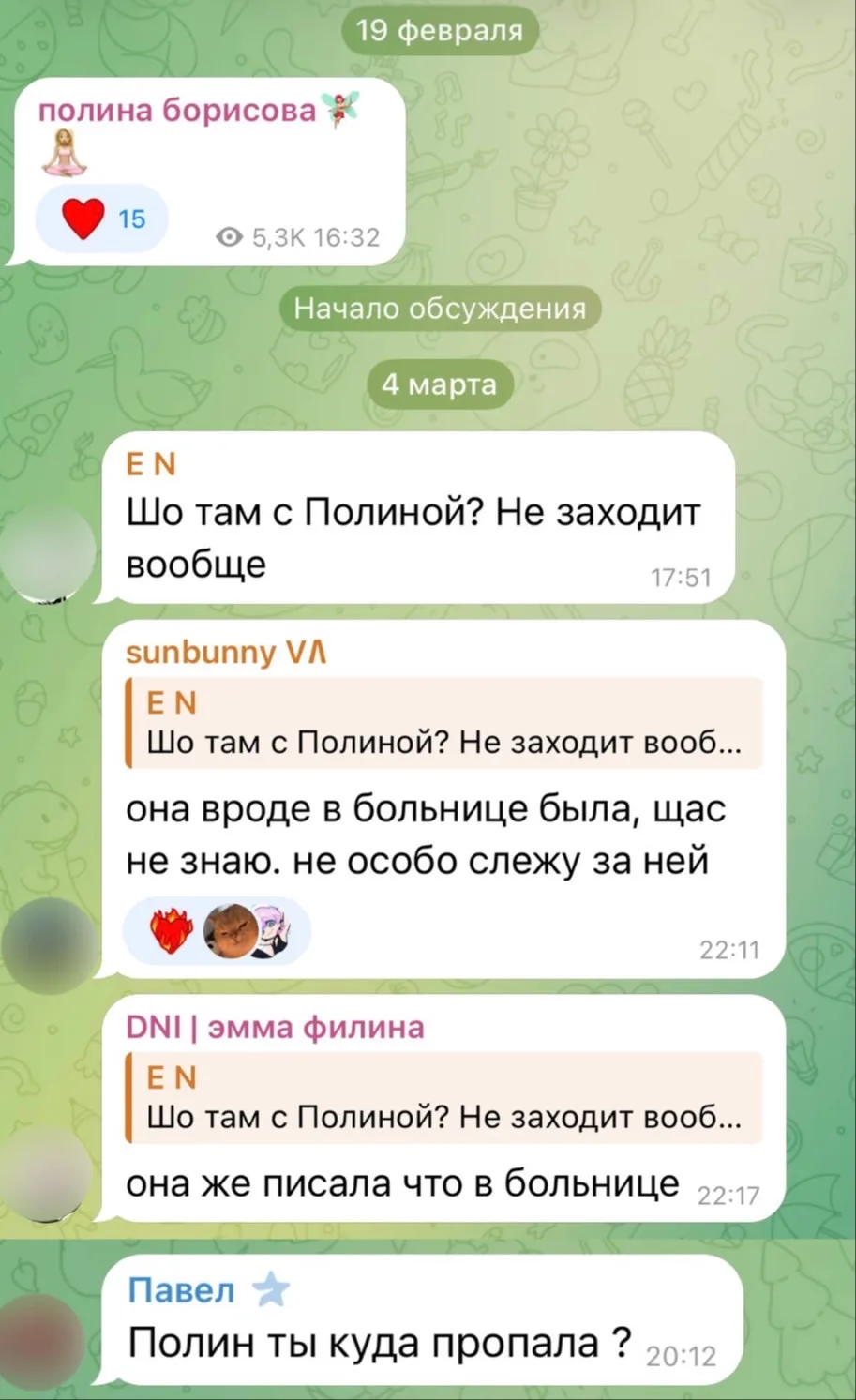 «В последнее время Полина, мягко говоря, стала не очень хорошо себя вести. В подробности вдаваться не буду, но её близкие всё знают.