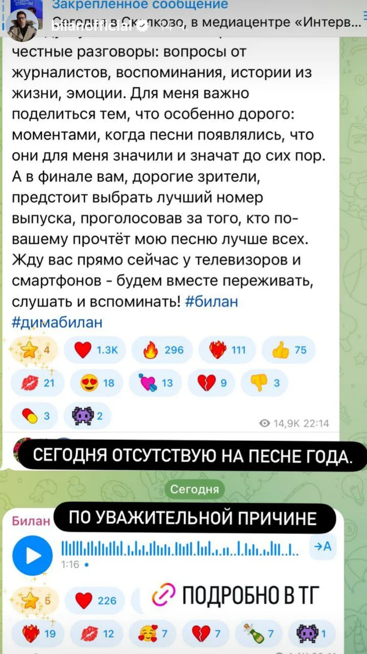 Дима Билан рассказал о причинах отсутствия на «Песне года 2025».