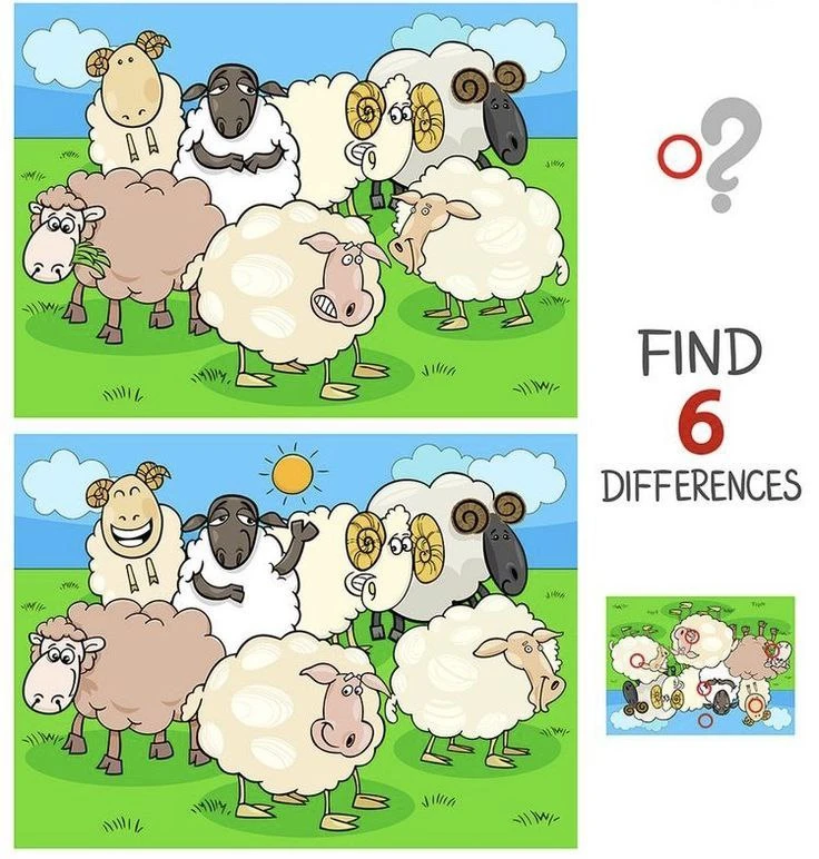 Необходимо на картинке найти 6 отличий.