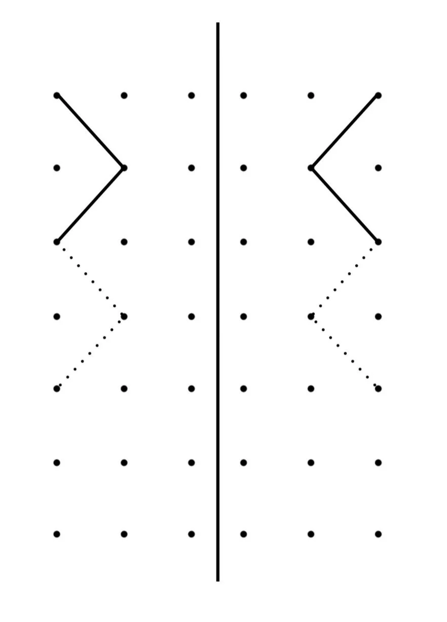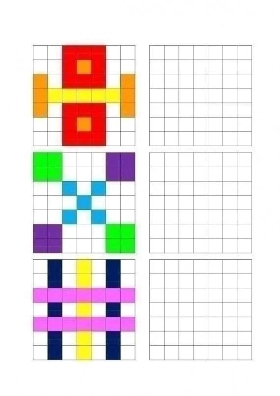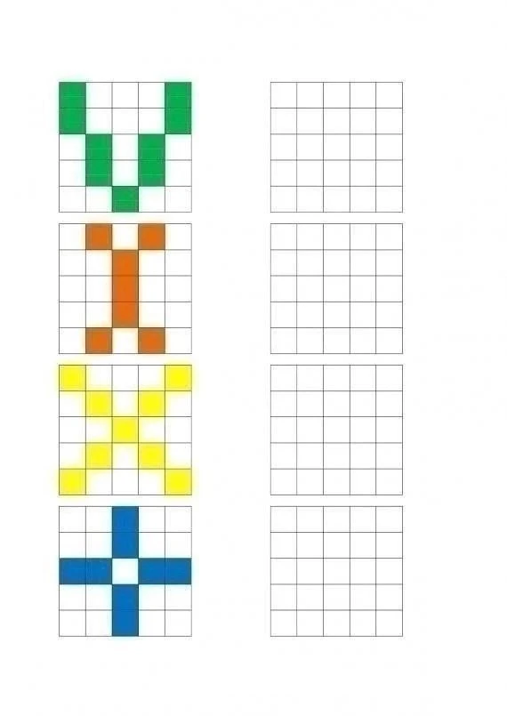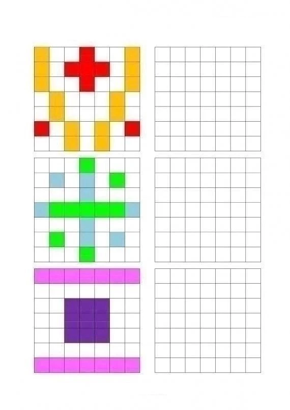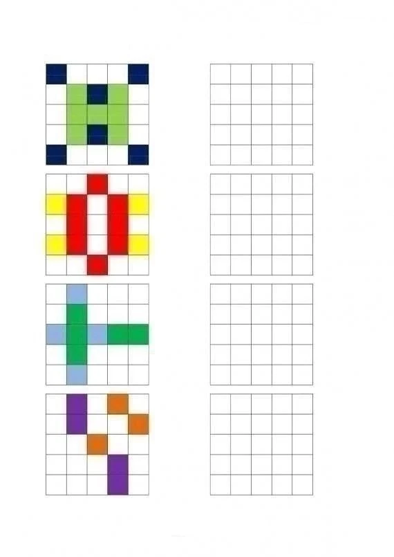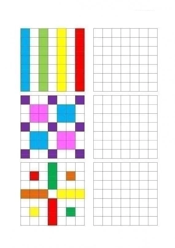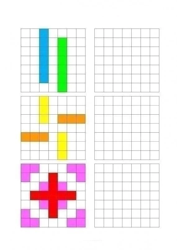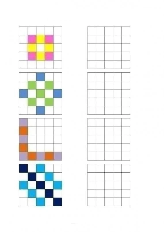 Обязательно даем ребенку время на запоминание, а затем закрываем левую часть и даем повторить узор.