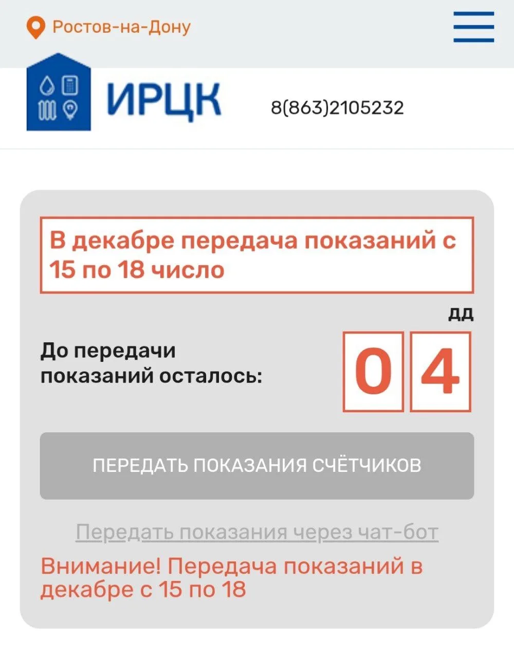 И напоминаем еще раз, жителям Суворовского которые обслуживались в ЮСЭС, необходимо передать показания счетчиков в ИРЦК с 15 до 18 декабря