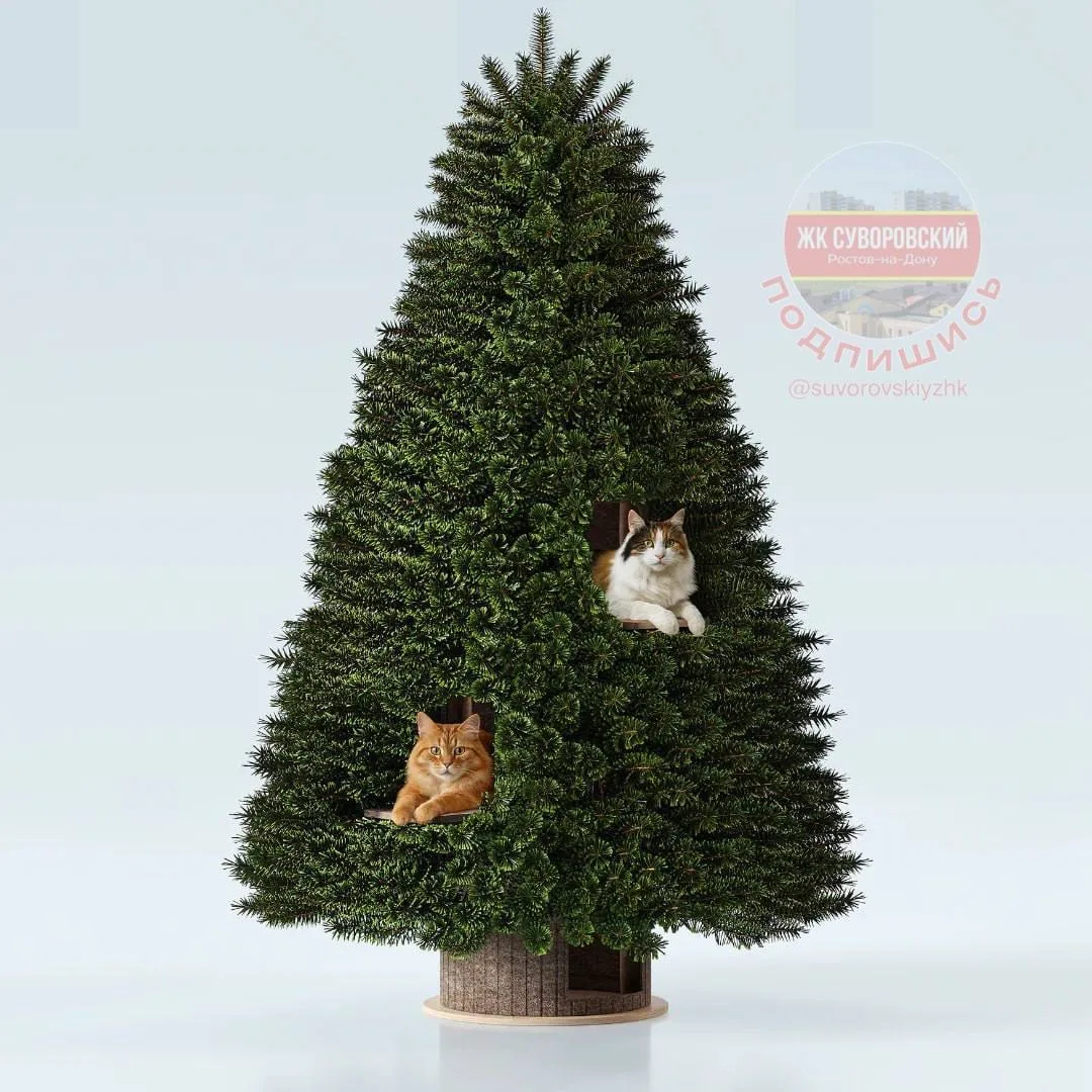 Новогодняя ёлка для котов захайпила в соцсетях — это буквально кошачий домик, в который вставляются ёлочные ветки.
