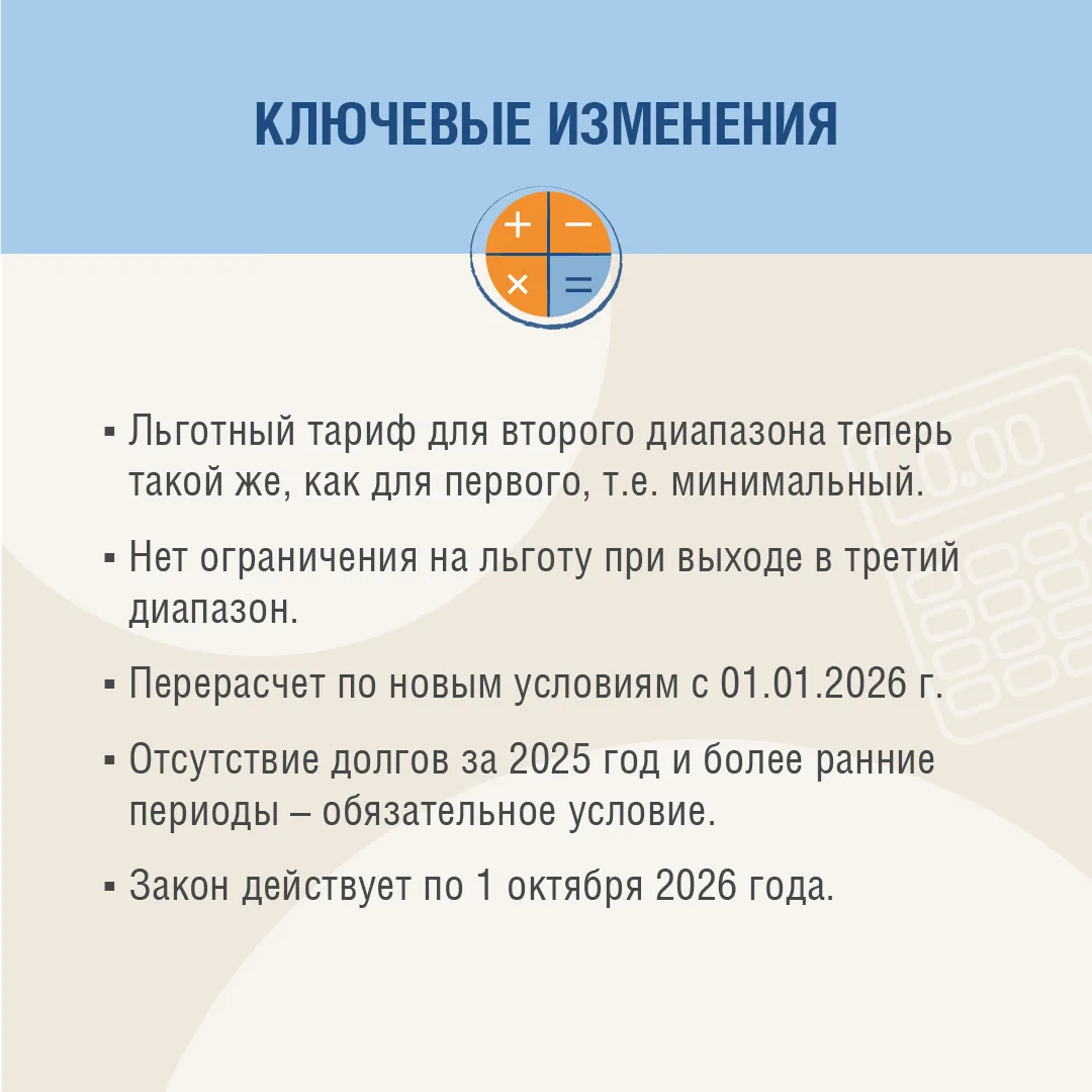 Льготный тариф сохраняется для второго диапазона потребления электроэнергии, однако в правила его применения внесены важные поправки.