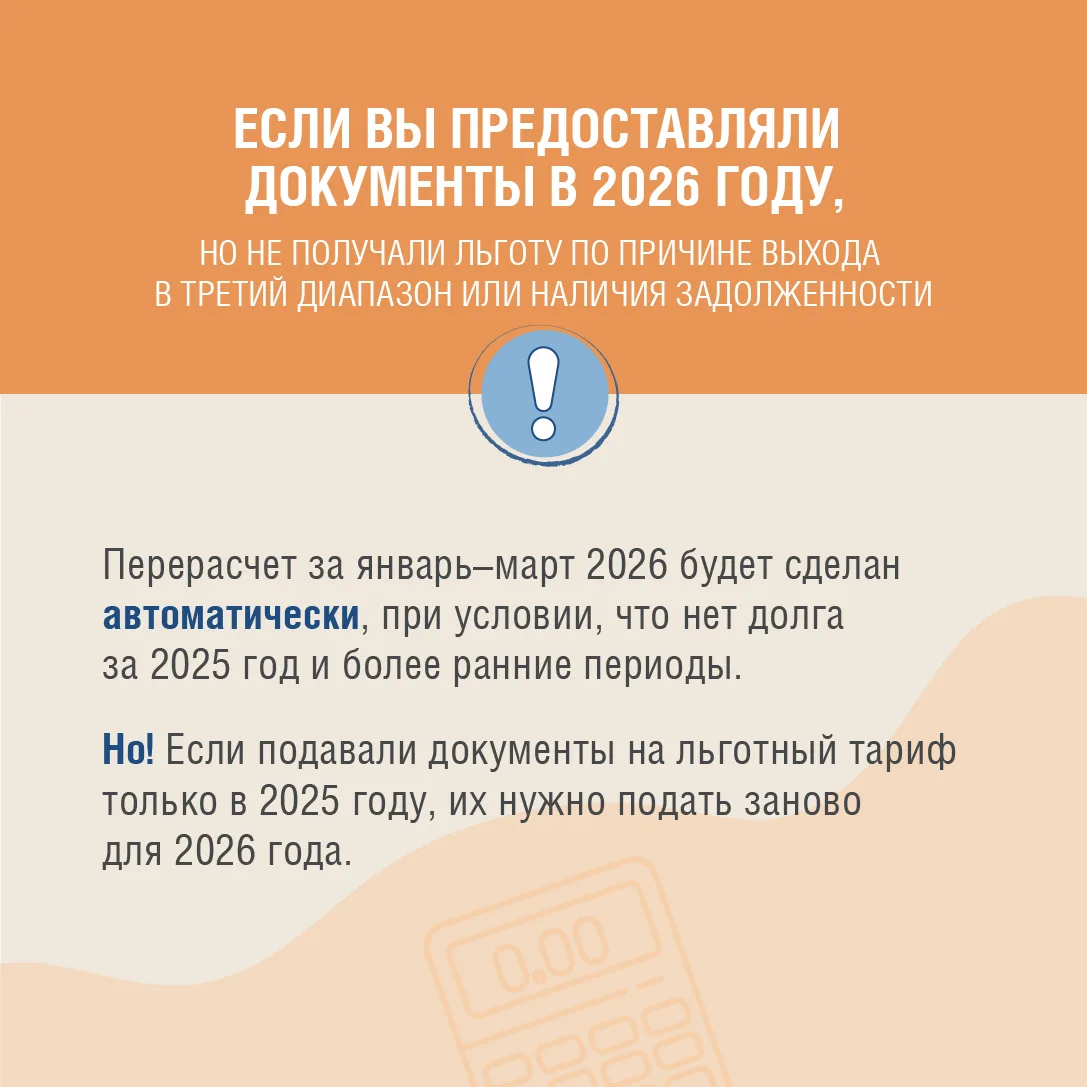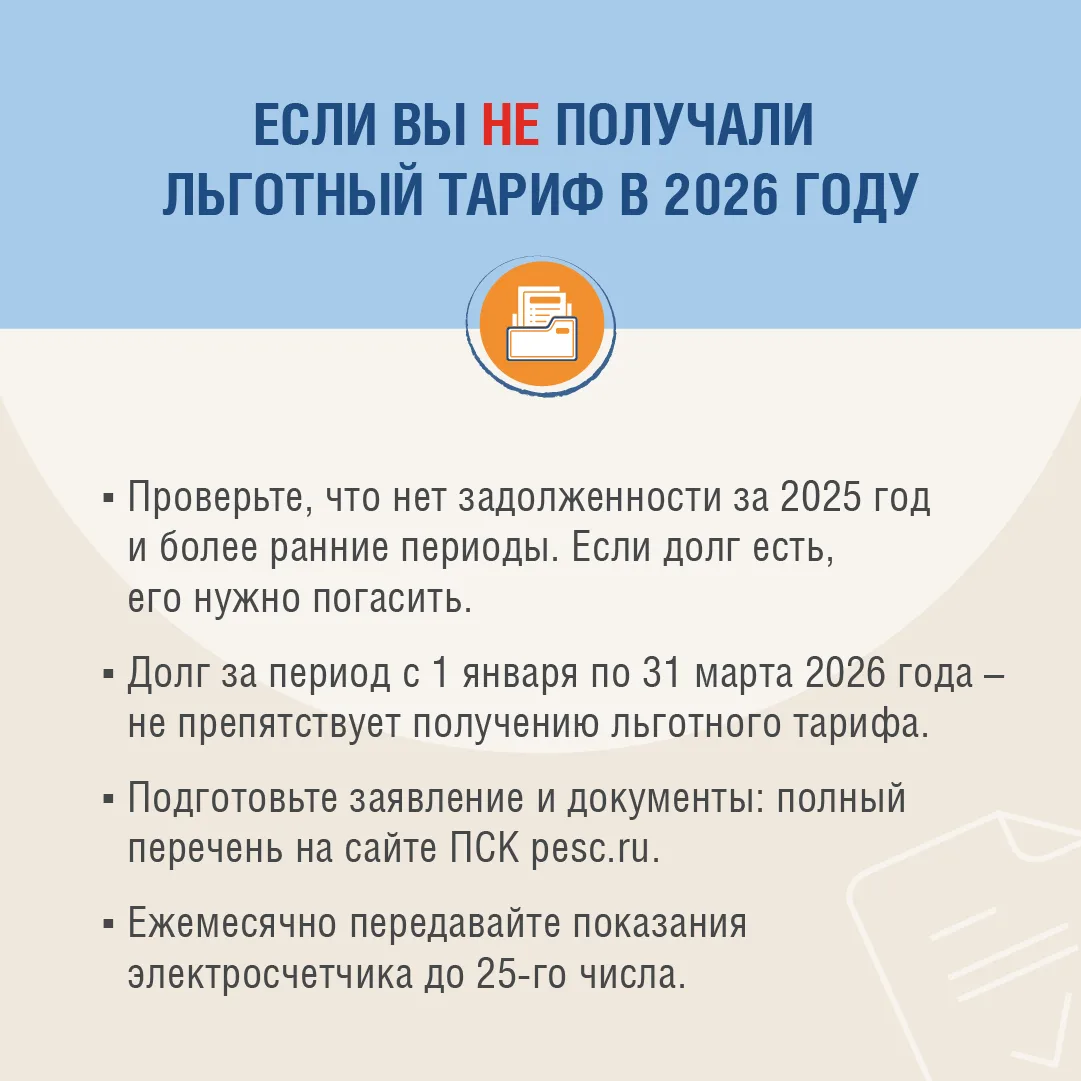 🔹какие документы нужно подать, если вы ранее не получали льготный тариф – размещена на нашем официальном сайте.