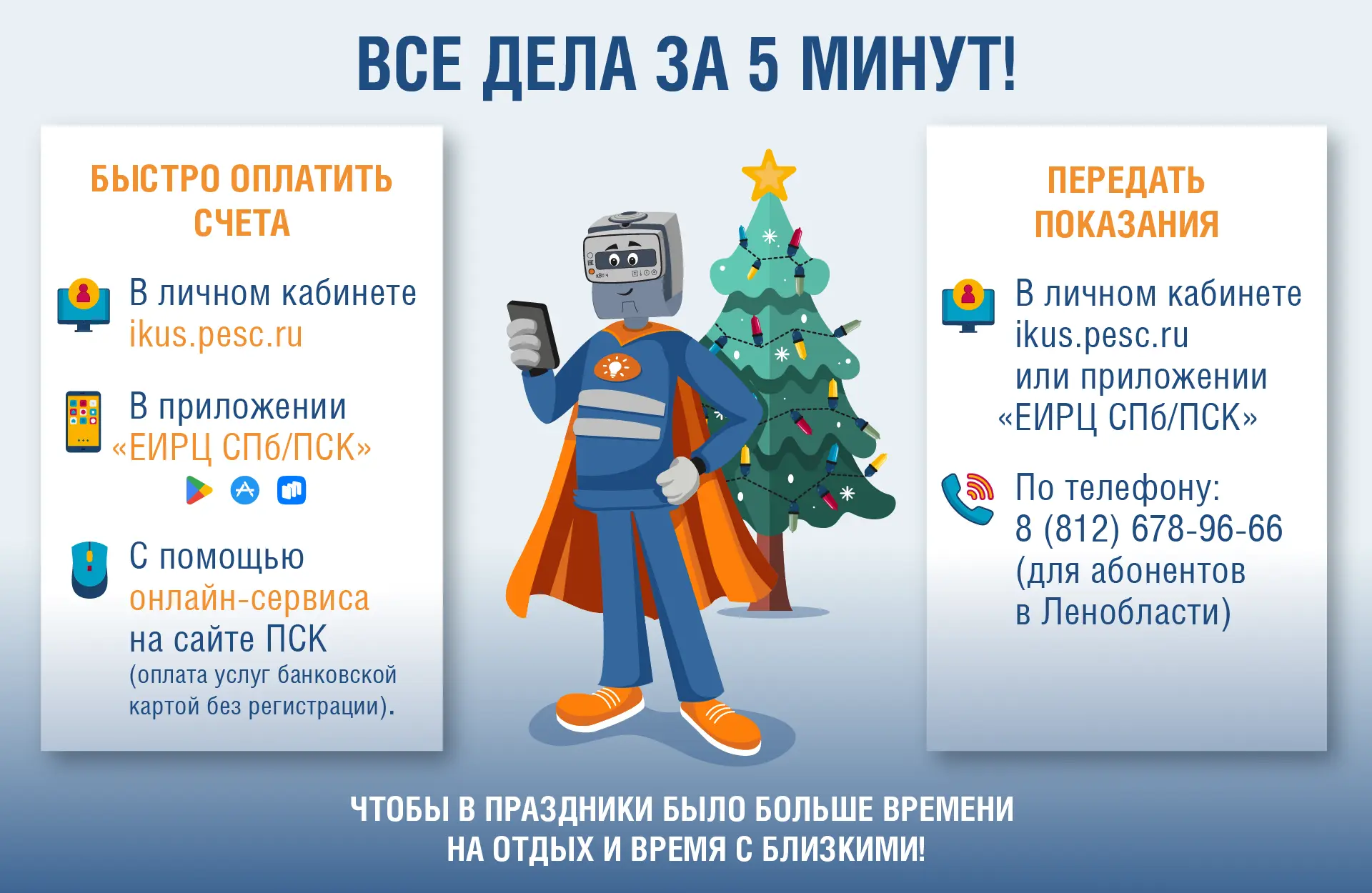🔸оплатите начисления по электроэнергии в счёте за ноябрь 2025 года (услуга «Электроэнергия ПСК» в едином платёжном документе АО «ЕИРЦ ЛО»);