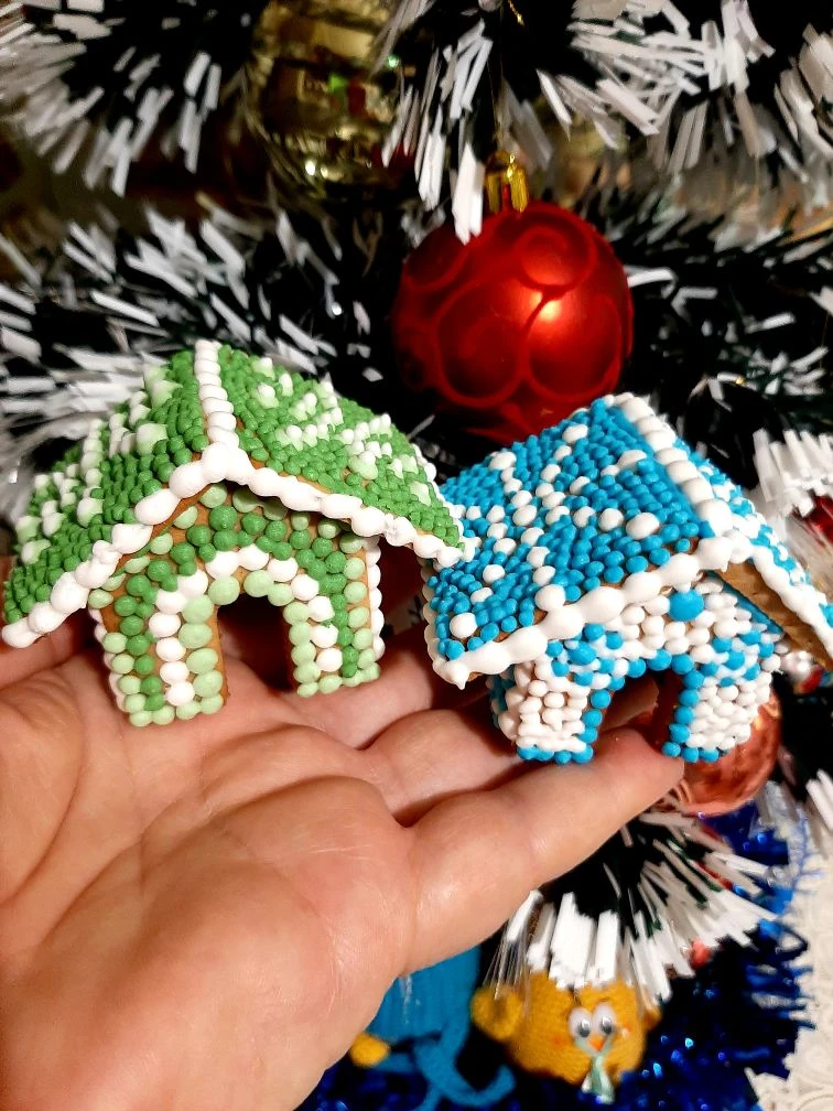5. Формовка: Быстро переложите массу в кондитерский мешок с насадкой «Звезда» и отсадите хвою на "ствол" ёлки, украсьте съедобными бусинами и уберите в холодильник.