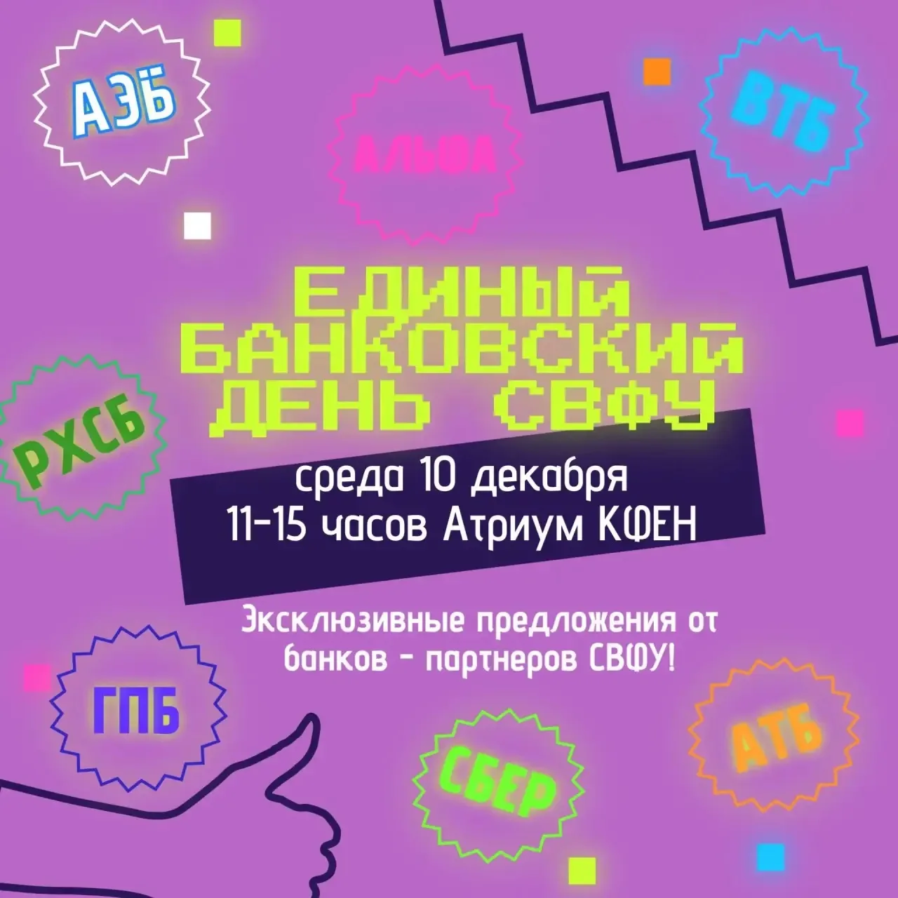 Успевайте посетить Единый банковский день в СВФУ: можете выиграть призы от банков, получить консультации по новым правилам ипотеки, оформить Пушкинскую карту и Карту жителя Якутии, пройти мастер-класс по игре го и другие активности. Мероприятие идет в атриуме КФЕН до 15:00 часов: