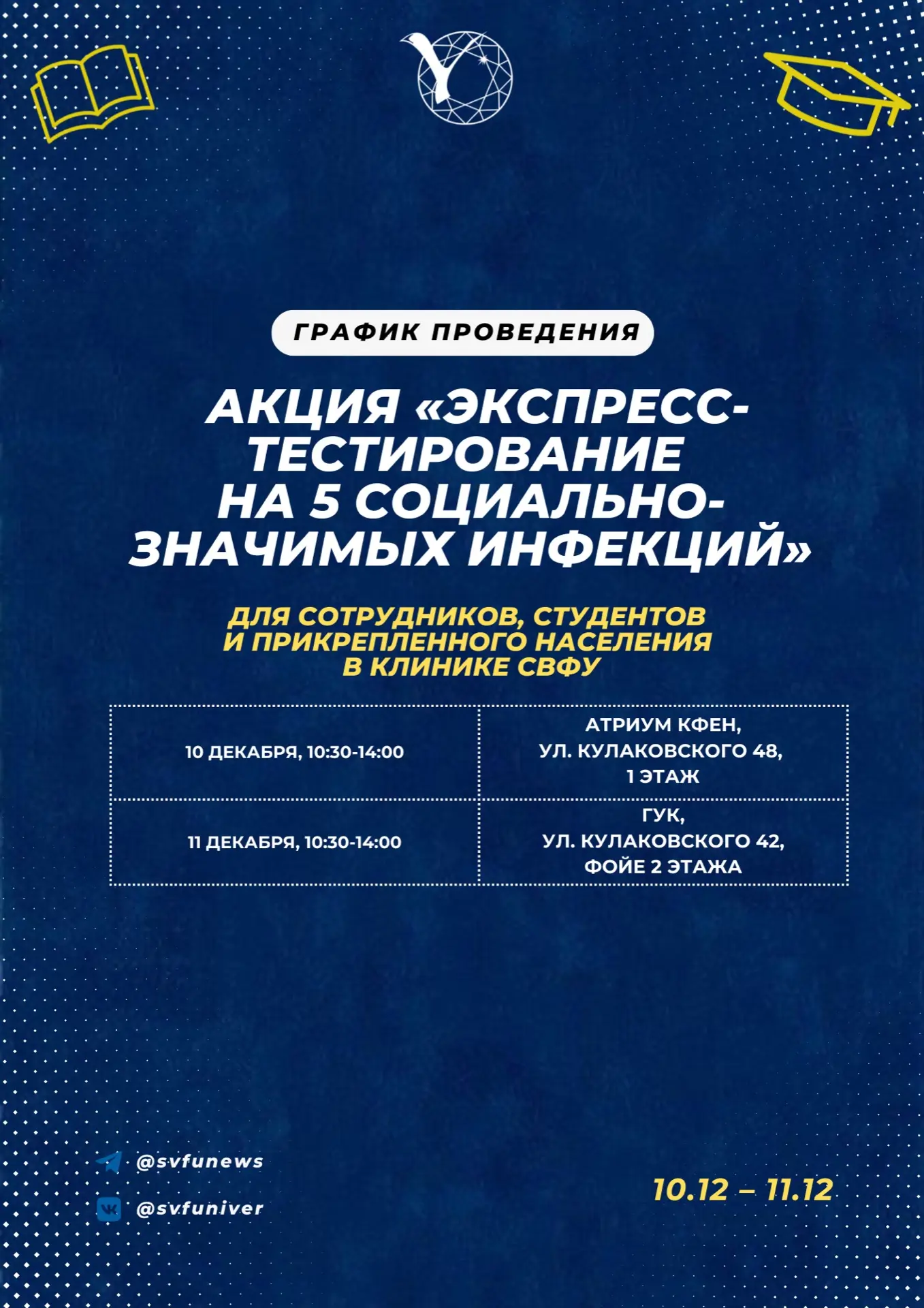 🏥В рамках заботы о здоровье студентов и сотрудников нашего университета пройдет акция «Экспресс-тестирование на 5 социально-значимых инфекций»!