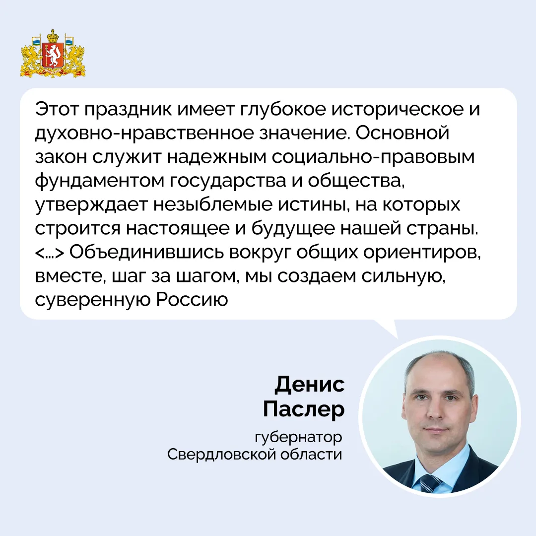 🇷🇺 Денис Паслер поздравил жителей Свердловской области с Днем Конституции Российской Федерации
