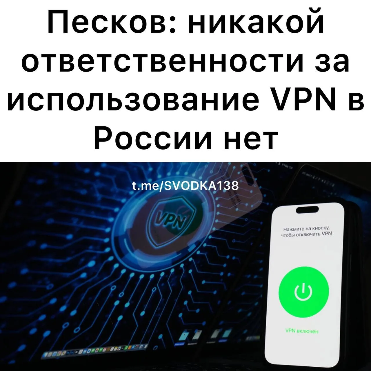 На данный момент в России нет никакой ответственности за использование VPN. Об этом 15 апреля заявил официальный представитель Кремля Дмитрий Песков.