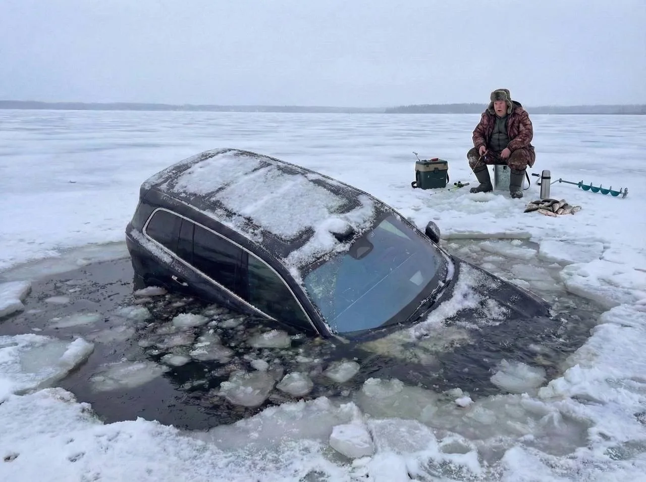 - В начале зимы поехали на рыбалку под этим делом, думали что поле, оказался лёд