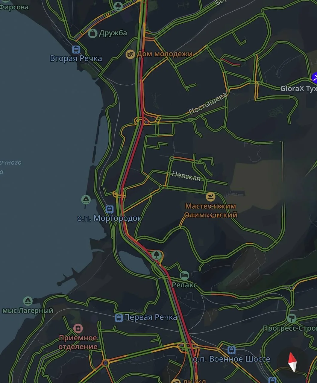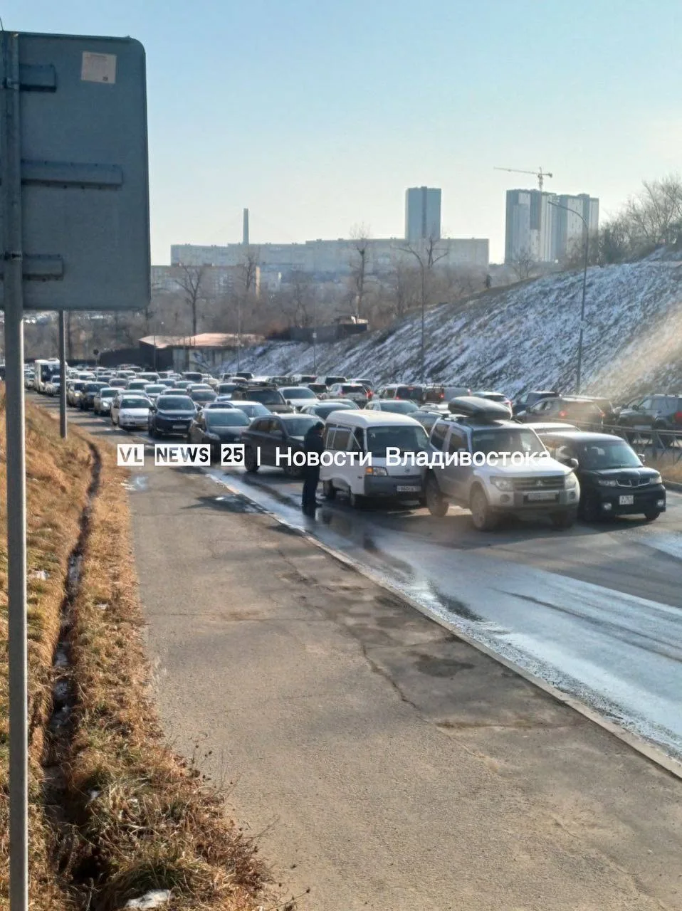 Во Владивостоке дорогу на Второй речке парализовало с самого утра — машины стоят в пробке на выезде из города
