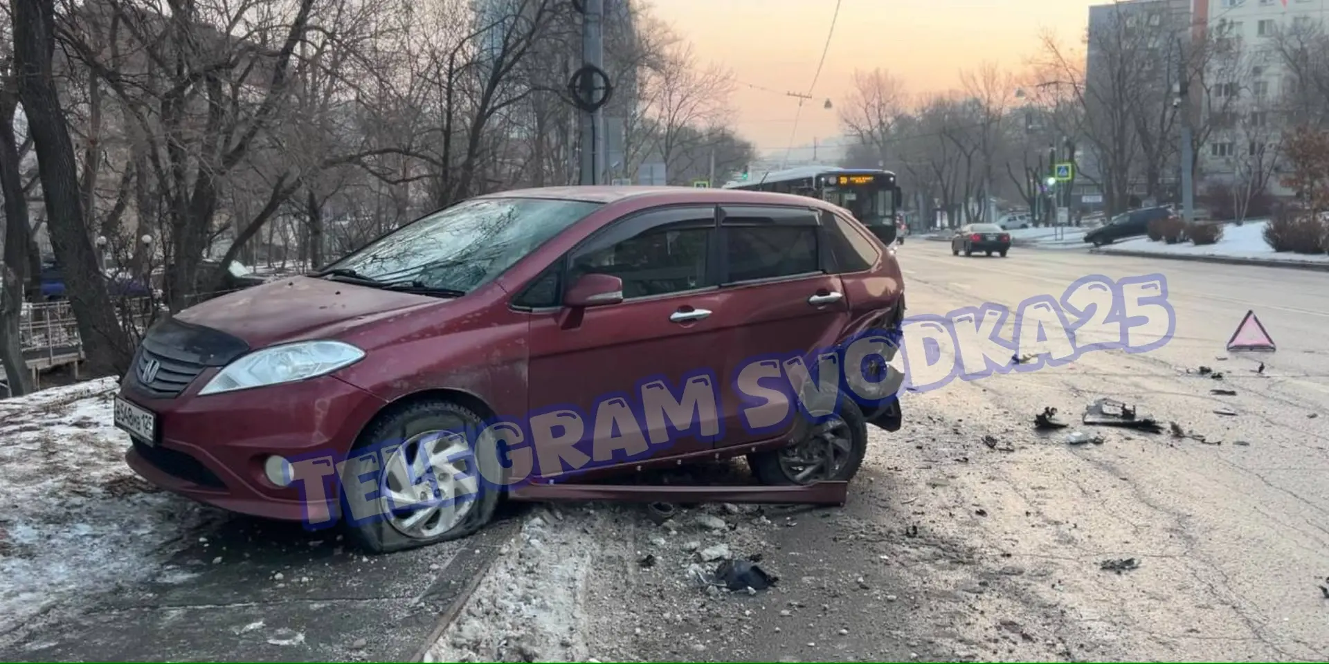 Во Владивостоке на Первой речке автомобиль вылетел на тротуар и снес пешехода — у женщины перелом ноги