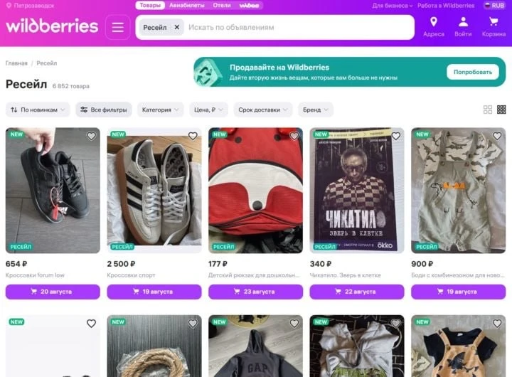 Wildberries расширил раздел «ресейл». Теперь на площадке можно выставлять на продажу не только вещи, купленные на самом WB. Всё будет работать по схеме, к которой все привыкли: покупатель оплачивает товар заранее и забирает его в пункте выдачи. При этом существуют небольшие ограничения: крупногабарит, техника, 18+ товары, лекарства размещаться не будут.