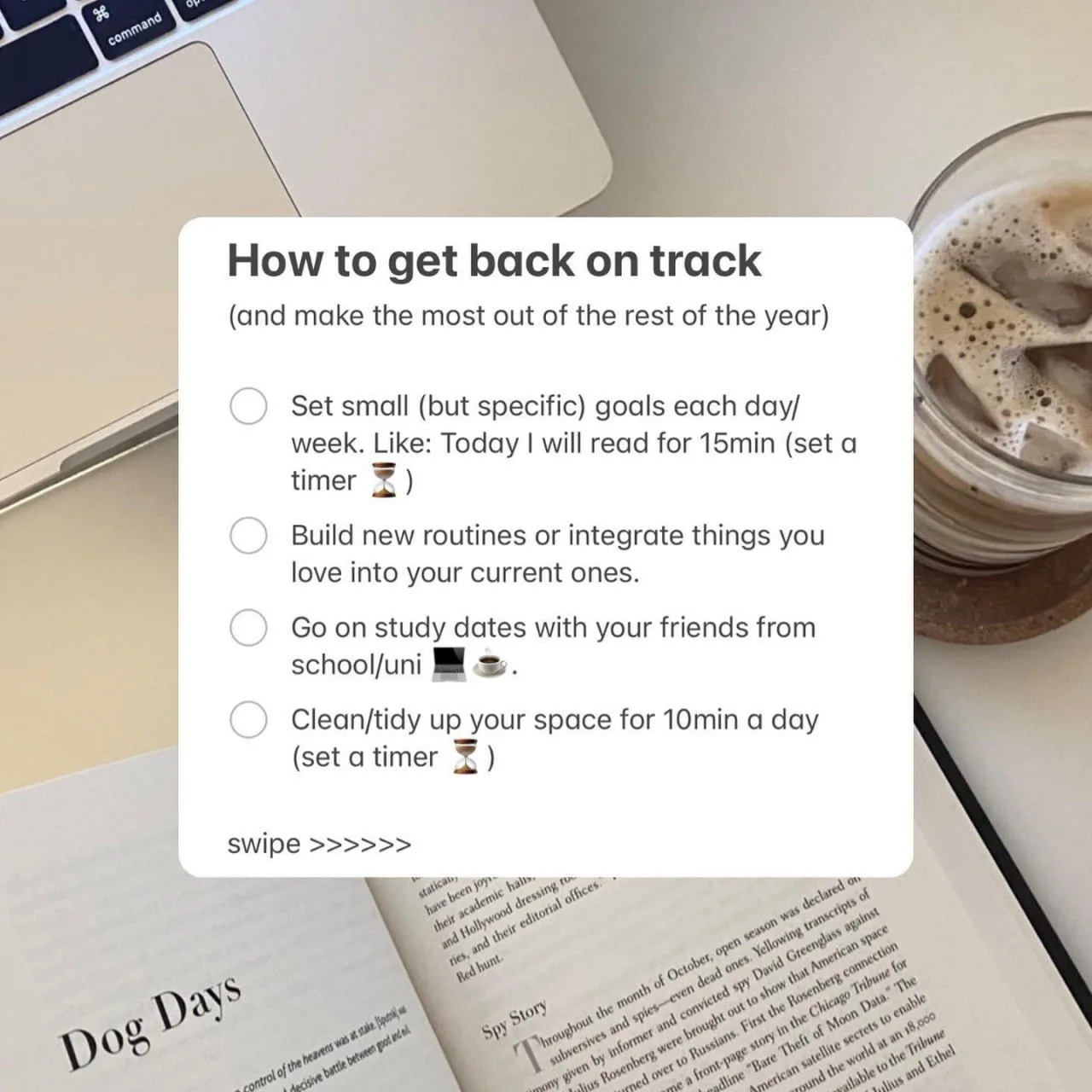 Каждый день у тебя есть выбор: провести день продуктивно или ничего не делать, никуда не стремиться. Твоё будущее зависит от того, что ты делаешь сегодня. Какой выбор делаешь: книга или тикток, яблоко или чипсы, сказать себе «я молодец» или «я недостойна». Каждый день у тебя есть шанс начать всё сначала и сделать то, что захочешь, стать тем, кем захочешь.