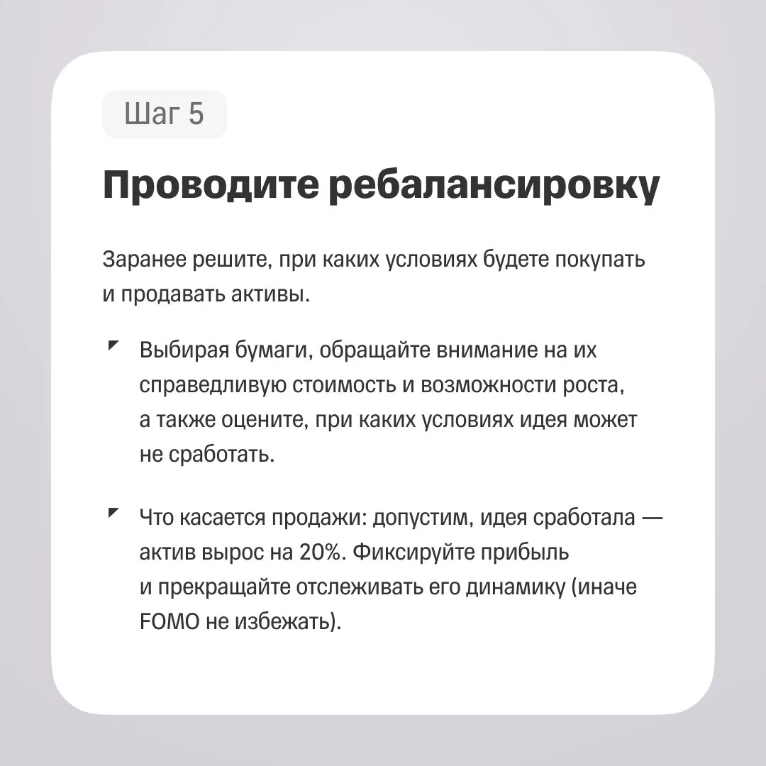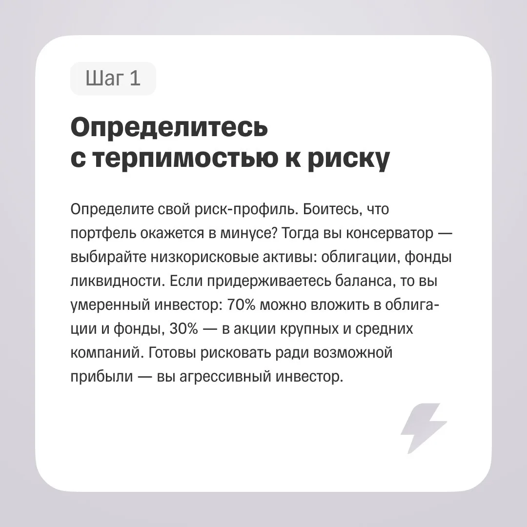 Академия инвестиций подготовила памятку для тех, кто недавно открыл брокерский счет и пока не знает, с чего начать инвестировать. Пять простых шагов — в карточках.